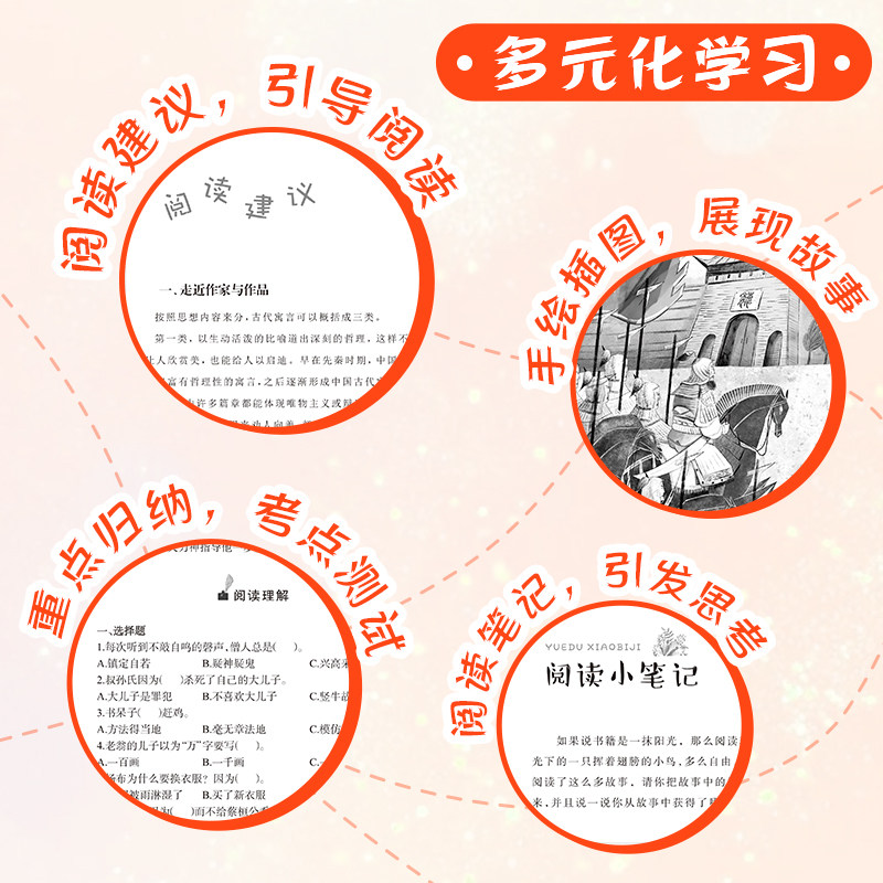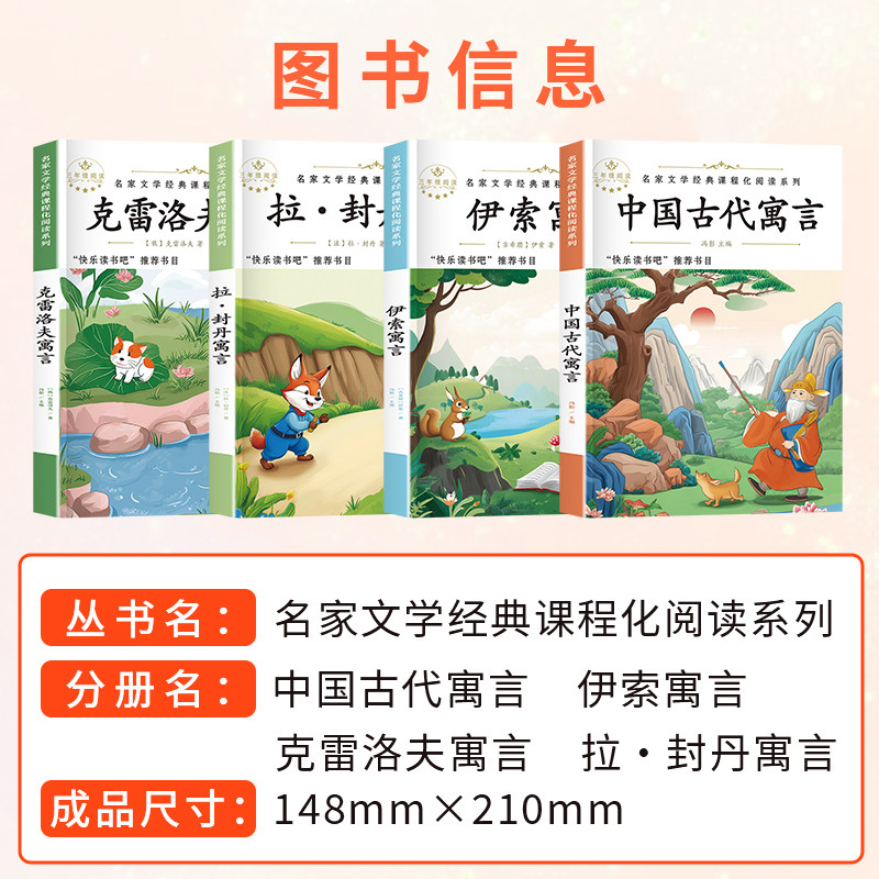 2026新版《快乐读书吧》三年级下册必读丛书,精选《中国古代寓言》《伊索寓言》《克雷洛夫寓言》《拉封丹寓言》四大经典寓言集,紧扣小学语文课程标准,同步课本阅读要求。全书图文并茂,配有精美插图,生动展现故事场景,激发孩子阅读兴趣。每则寓言后附简要解读,帮助理解寓意,提升思辨能力。特别配备有声伴读功能,扫码即可聆听标准朗读,助力自主阅读与语言学习。内容健康向上,语言简洁生动,适合三年级学生课外拓展阅读,是培养阅读习惯、积累语言素材、领悟人生智慧的优质读本,深受师生和家长好评。