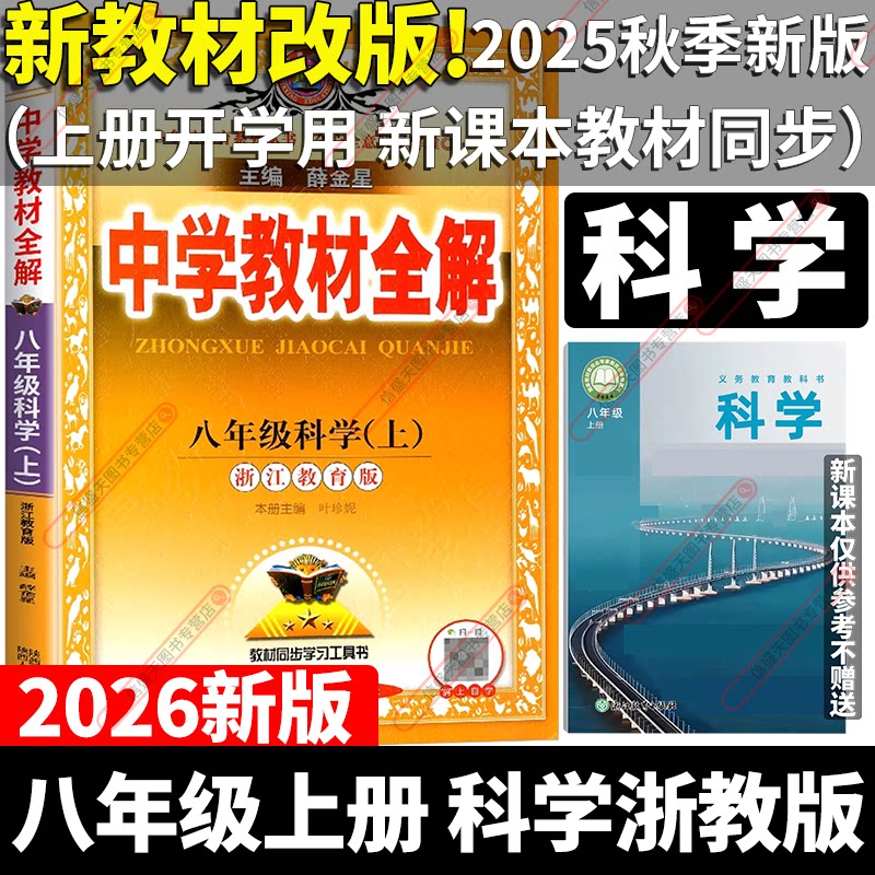 天猫新教材改版2026新版薛金星中学教材全解八年级上册下册科学浙教版初中课本新教材完全解读考点配套练习册总复习资料课堂同步训练题