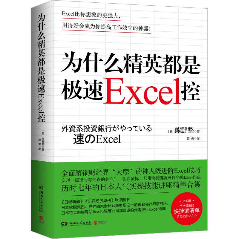 《为什么精英都是极速Excel控》由熊野整所著,全面解锁财经界顶尖投行“大摩”(摩根士丹利)精英的神人级Excel技巧。书中揭示这些职场高手如何在高压环境下实现“极速操作”与“零失误”的完美并立。作者结合自身经验,系统讲解快捷键组合、函数活用、数据建模与自动化技巧,帮助读者摆脱繁琐操作,提升工作效率。无论是财务分析、数据整理还是报告制作,本书都提供即学即用的进阶方法。通过博库网等平台,读者可轻松获取这本实用指南,掌握精英们高效工作的核心技能,在竞争激烈的职场中脱颖而出。