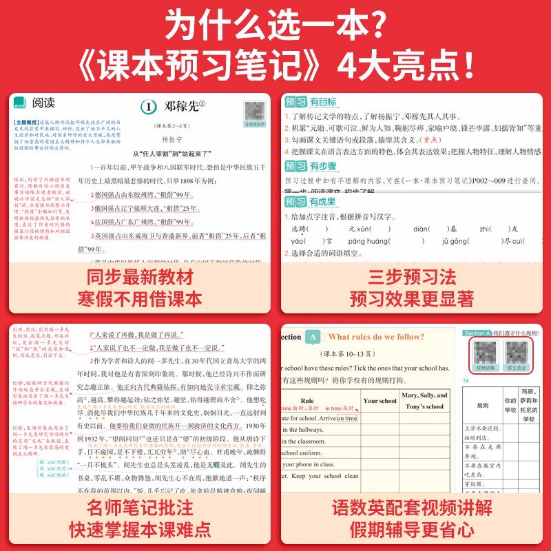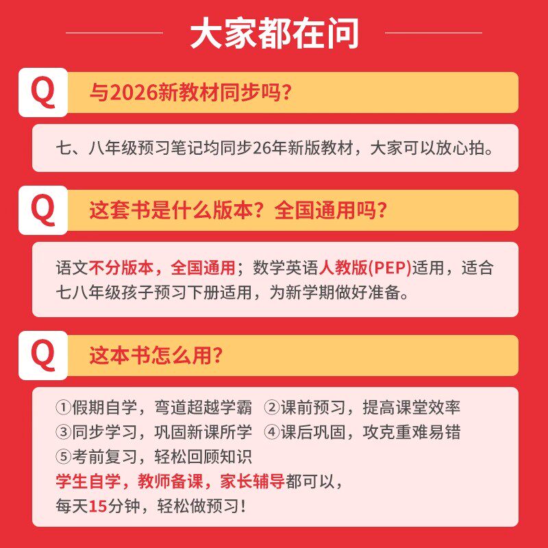 天猫2026春一本课本预习笔记七下课堂笔记八年级下册语文数学英语人教版初一二课本全套初中78年级预习课本同步教材讲解读解析