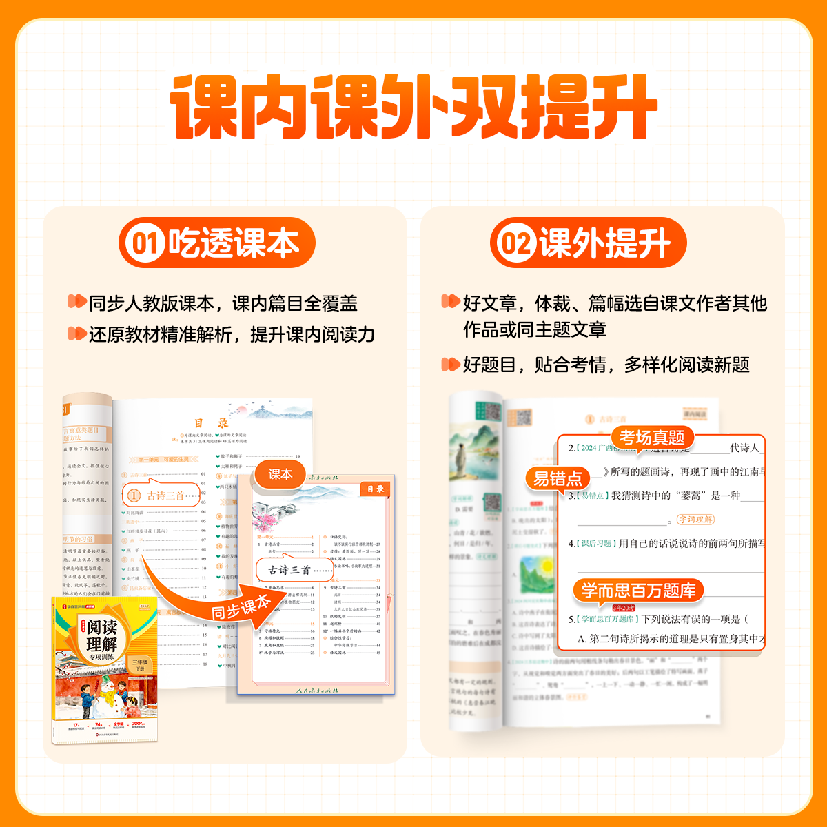 学而思2026新版《小学同步阅读理解专项训练》紧扣人教版语文教材,覆盖小学一至六年级,按年级分级设计,精准匹配课内知识点与能力要求。本书精选历年真题与典型例题,聚焦阅读理解核心题型,系统提升学生的信息提取、推理判断与表达赏析能力。每单元配备“方法指导+真题精练+名师精讲”三位一体学习模式,帮助学生掌握答题技巧,强化读写结合。配套WX平台提供视频讲解与智能测评,实现个性化学习。内容科学编排,难度循序渐进,是小学生夯实语文基础、提升阅读素养的高效助学工具,助力孩子在语文学习中稳步进阶。