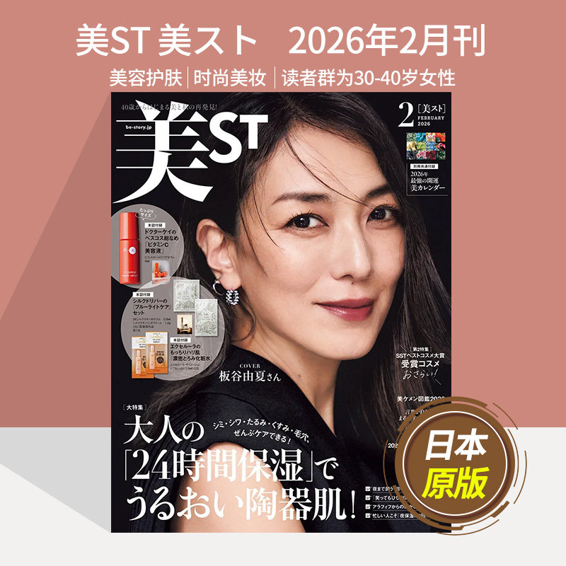 4月新到!现推出【空运进口】美ST美スト(BEST BEAUTY)2025/26年全年12期订阅服务,亦可选择单期购买。本杂志为日本权威美容护肤美妆时尚期刊,内容涵盖最新护肤趋势、彩妆技巧、成分解析及明星专访,兼具专业性与潮流感。每期附赠2024年限定日文附录及精美赠品,超值实用。全刊日文原版,原汁原味呈现日本美妆前沿资讯。适合追求高品质护肤与时尚造型的读者。订阅即享全年不间断送达,空运快速通关,确保新鲜到手。无论是自用还是送礼,都是提升美感的理想之选。立即订阅,紧跟日本美妆新风尚!