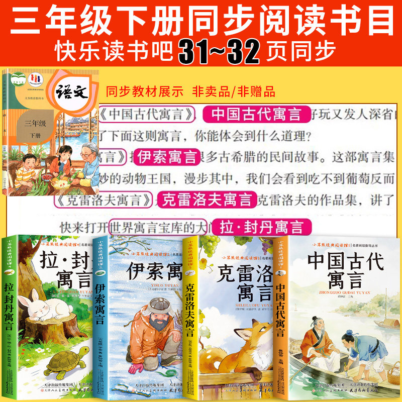 天猫3册中国古代寓言故事三年级下册课外书必读正版伊索克雷洛夫寓言拉封丹快乐读书吧3下老师推荐阅读经典书籍人教版书目名著完整版