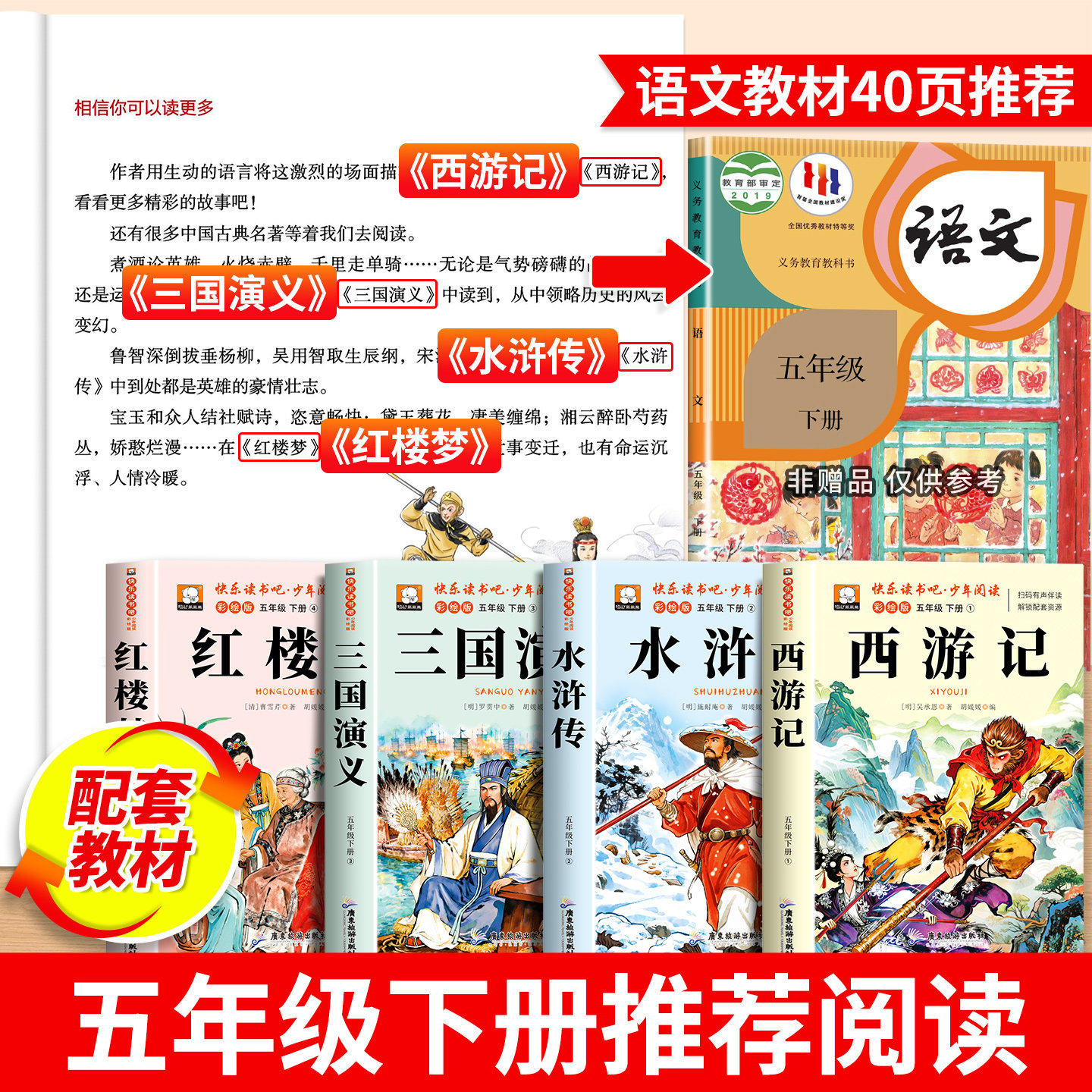 四大名著小学生版正版原著完整版五年级下册必读的课外书老师推荐快乐读书吧五5下全套西游记三国演义水浒传红楼梦青少年版人教版