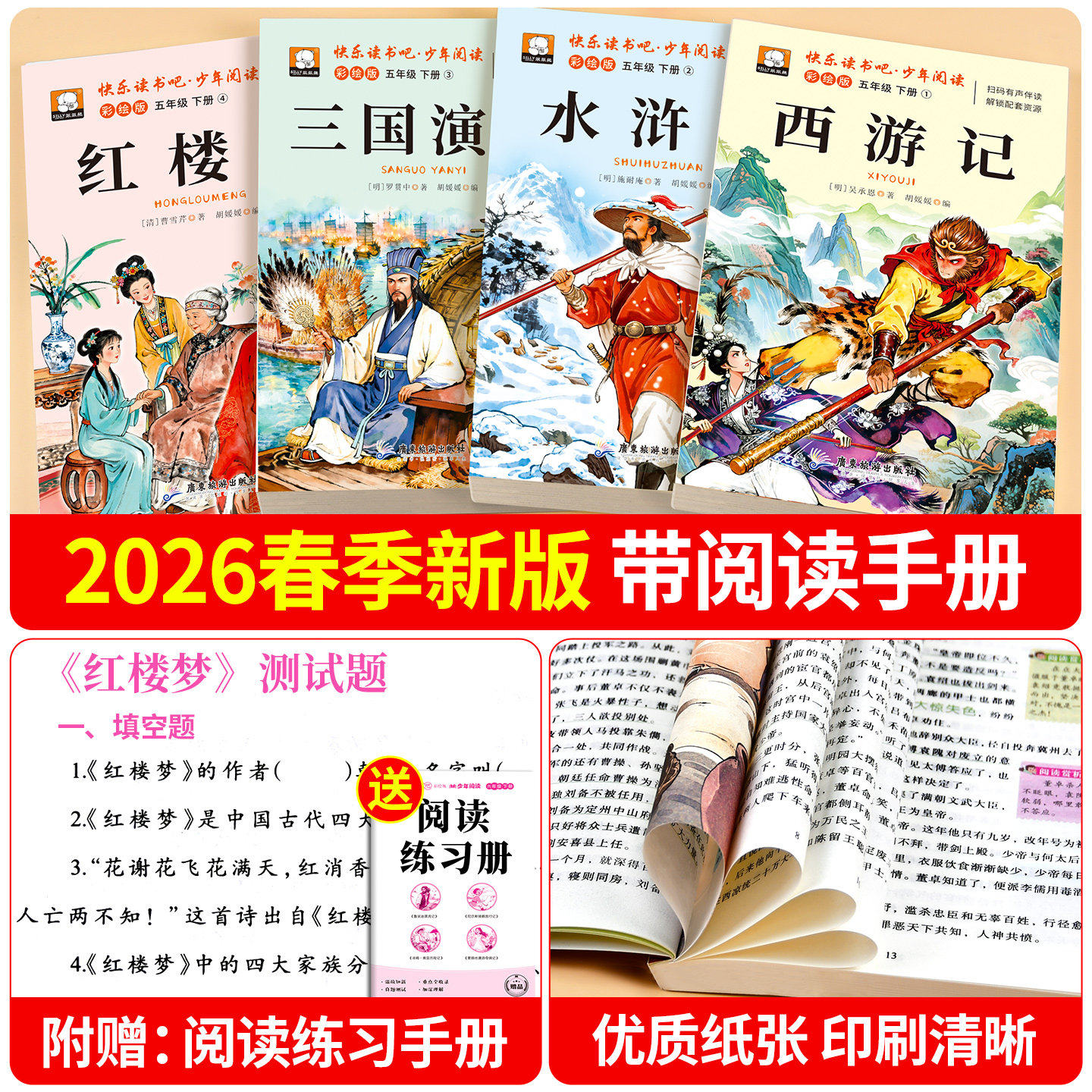 《四大名著小学生版》是专为五年级学生打造的正版青少年读本,完整收录《西游记》《三国演义》《水浒传》《红楼梦》原著精华,语言通俗易懂,保留经典情节与人物形象,符合“快乐读书吧”推荐阅读要求。该套书由人教版权威审定,图文并茂,配有注释与导读,帮助学生理解传统文化精髓,提升阅读能力与文学素养。作为五年级下册必读课外书,它既满足老师教学需求,又激发孩子阅读兴趣,是孩子走进中国古典文学世界的理想桥梁。正版保障,内容完整,适合小学生独立阅读与课堂学习使用。