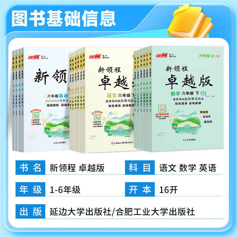 2026春《优翼新领程卓越版》小学语文、数学、英语同步练习册,涵盖一至六年级上下册,与人教版、北师大版教材完全同步。本书紧扣新课标要求,围绕课本知识点精心设计“一课一练”,题型丰富多样,难度梯度合理,注重基础巩固与能力提升并重。每课包含预习导学、课堂精练、课后拓展等模块,帮助学生夯实基础、拓展思维。配套答案详解,便于家长辅导与自我检测。适用于日常随堂练习、课后复习及阶段性自测,是小学生高效学习、提升学业成绩的理想教辅资料,助力学生全面发展,轻松应对学业挑战。