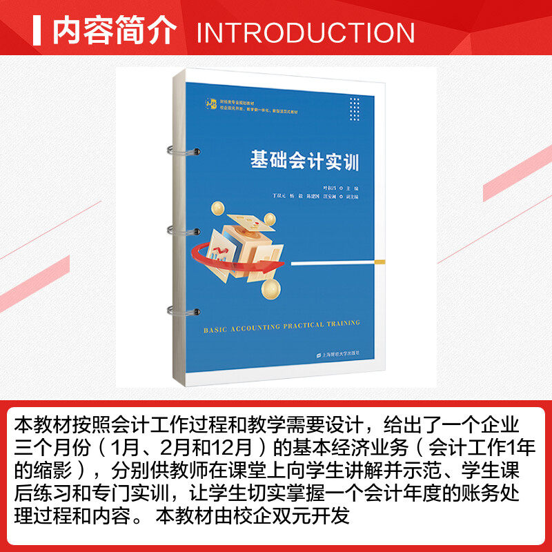 《基础会计实训》由叶叔昌编著,是上海财经大学出版社出版的大中专院校会计专业实训教材,新华书店正版发行。本书紧扣会计基础理论与实践操作,系统讲解会计凭证、账簿、报表等核心内容,注重培养学生的实际动手能力。书中配有大量仿真实训案例和练习题,涵盖企业日常经济业务的账务处理流程,帮助学生巩固理论知识、提升实务技能。内容编排科学合理,语言通俗易懂,适合高职高专、中职及成人教育等层次会计专业师生使用。作为一本实用性强的实训教材,本书在会计教学领域广受好评,是会计初学者掌握基本操作技能的重要学习资料。