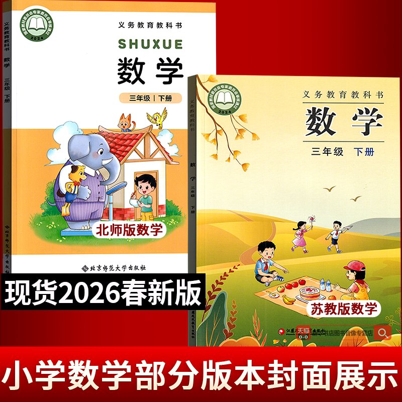 天猫【26春季新改版】2026使用新版小学3三年级下册语文数学道德书人教版北师版苏教版西师版3下三年级下学期课本教科书新华书店