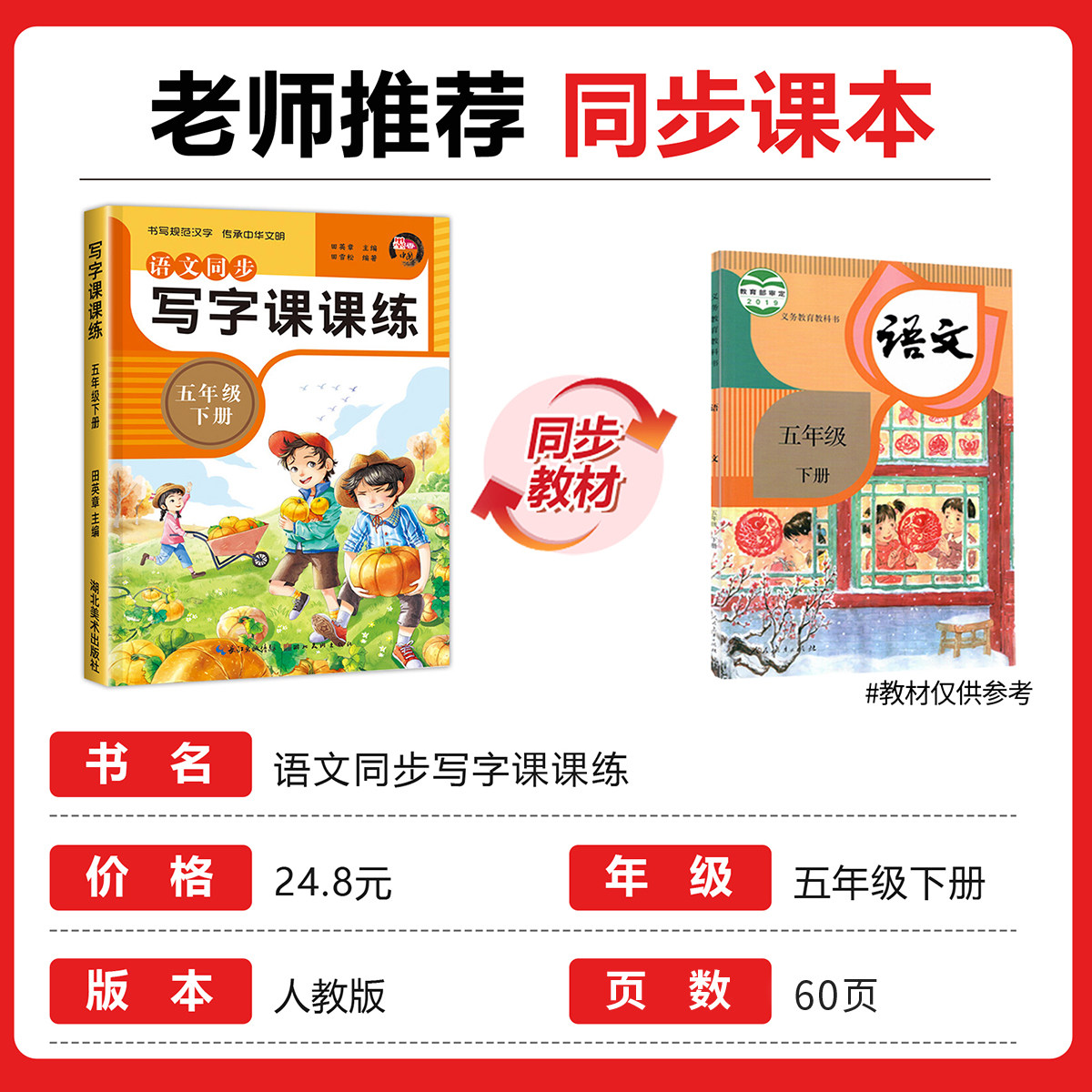 天猫五年级下册语文同步字帖 练字帖人教部编版五下课本教材每日一练小学5年级人教版 下学期写字帖写字课课练 练字本小学生专用RJ
