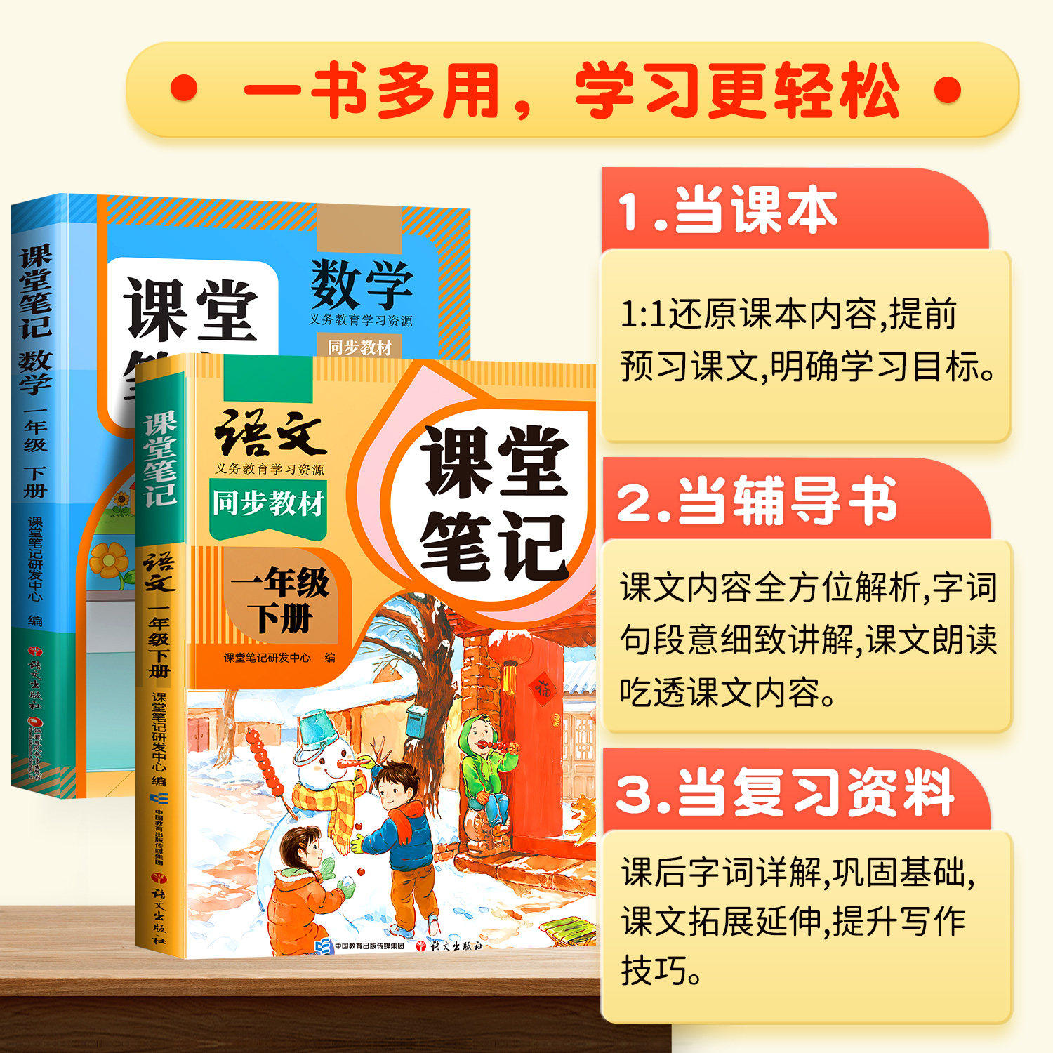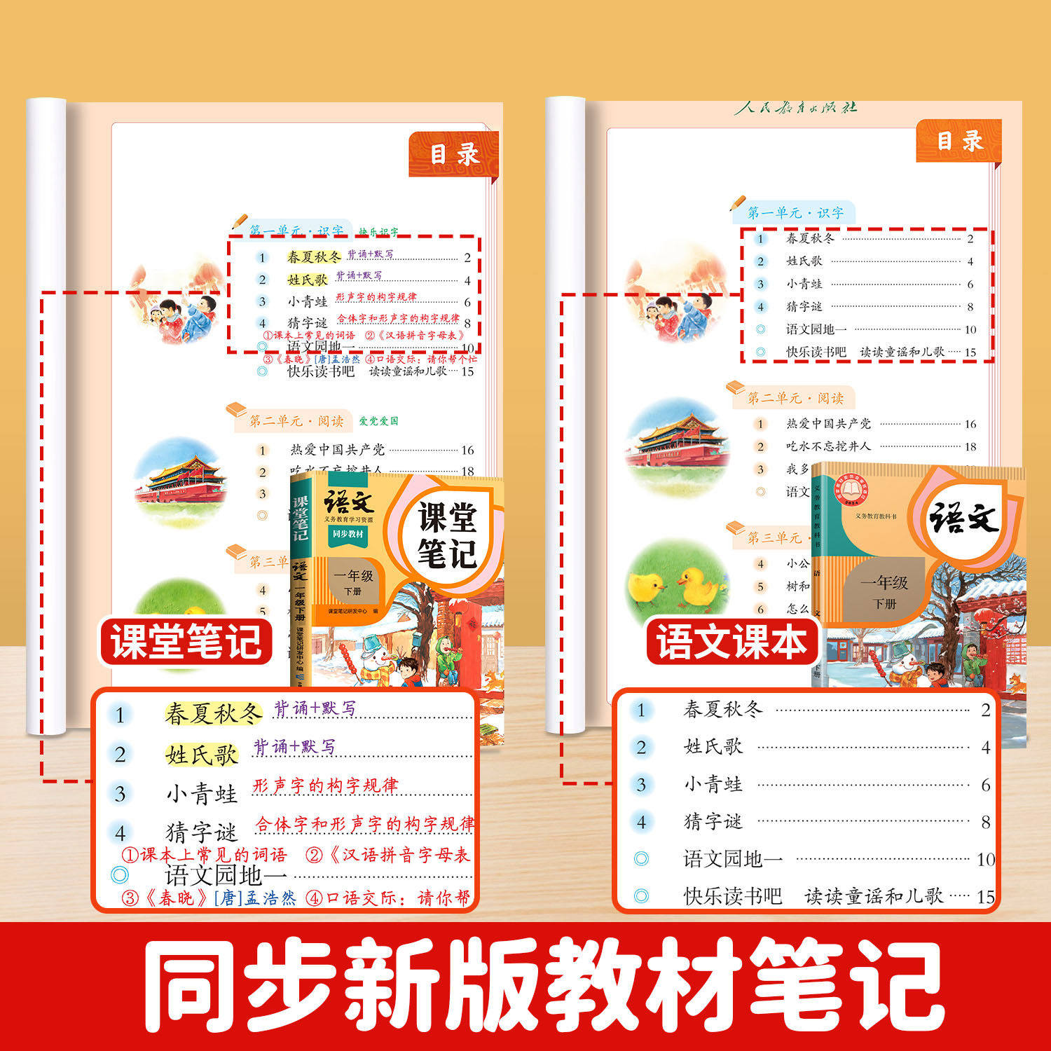 天猫【2026新版】一年级下册上册课堂笔记人教版 语文数学预习同步课本书一上教材解读全解解读小学生1年级状元学霸笔记黄冈随堂笔记