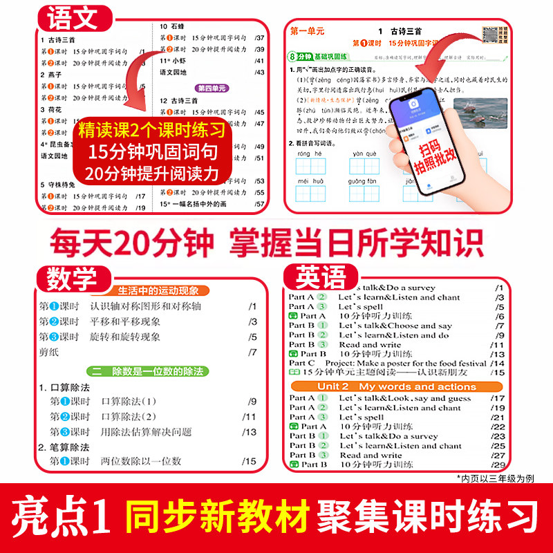 天三年级下册课堂笔记语文数学英语人教版2026新版小学课本同步教材笔记3年级上册外研随堂黄冈学霸本课前原文全讲解预习资料辅导书