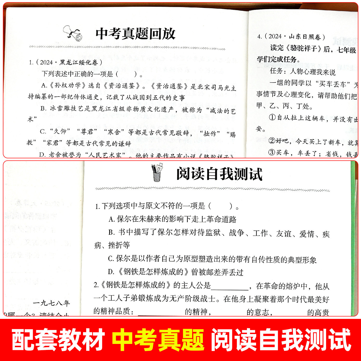 天猫骆驼祥子和钢铁是怎样炼成的 七年级下册必读书正版书配套人教版老舍名著初一课外阅读书籍初中生7七下语文课外书北京教育出版社