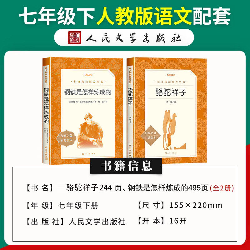 天猫人民文学出版社骆驼祥子和钢铁是怎样炼成的正版原著完整版7七年级上下册必读的课外书初一课外阅读书籍名著无删减配套人教版书目