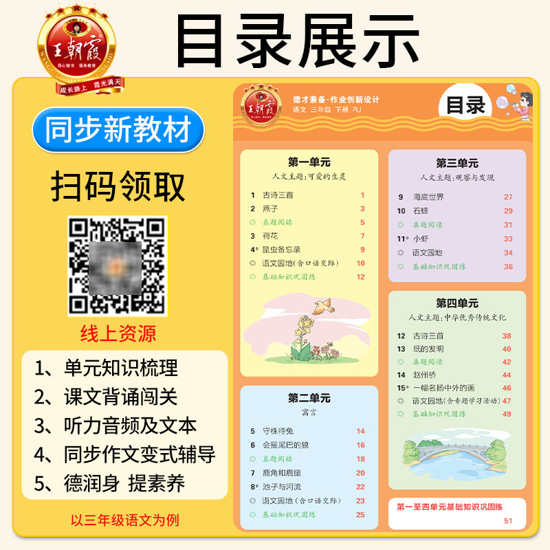 2026新版《王朝霞德才兼备作业创新设计》是一套专为小学一至六年级学生打造的同步练习册,涵盖语文、数学、英语(Join in、人教版、北师大版、剑桥版)等多个版本教材。该练习册紧扣新课标要求,注重分层训练,设置基础巩固、能力提升和拓展创新三大梯度,满足不同层次学生的学习需求。内容设计科学合理,题型新颖灵活,强调知识迁移与综合素养培养,助力学生夯实基础、提升思维。同时融入生活情境与实践应用,激发学习兴趣,真正实现“德才兼备”的育人目标,是学生课后巩固、教师教学辅助的理想之选。