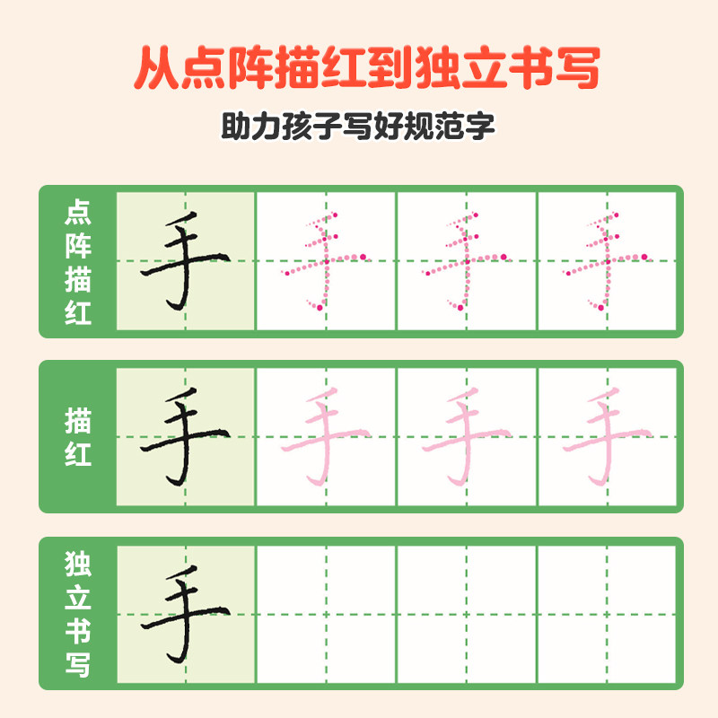 《爱德少儿规范练字描红本》专为3-7岁儿童设计,助力幼升小衔接。本系列涵盖基础汉字、拼音、数字等一年级核心内容,采用科学描红与临摹结合的方式,帮助孩子掌握规范书写。每页配有趣味图解,将抽象笔画转化为生动形象,提升学习兴趣。同步提供动画视频教学,直观演示笔顺与结构,让书写更标准、更高效。纸张环保护眼,排版清晰,适合学龄前儿童每日练习。通过系统训练,孩子不仅能打下扎实的书写基础,还能培养专注力与手眼协调能力,轻松适应小学学习节奏,是家长与幼儿园信赖的启蒙练字好帮手。