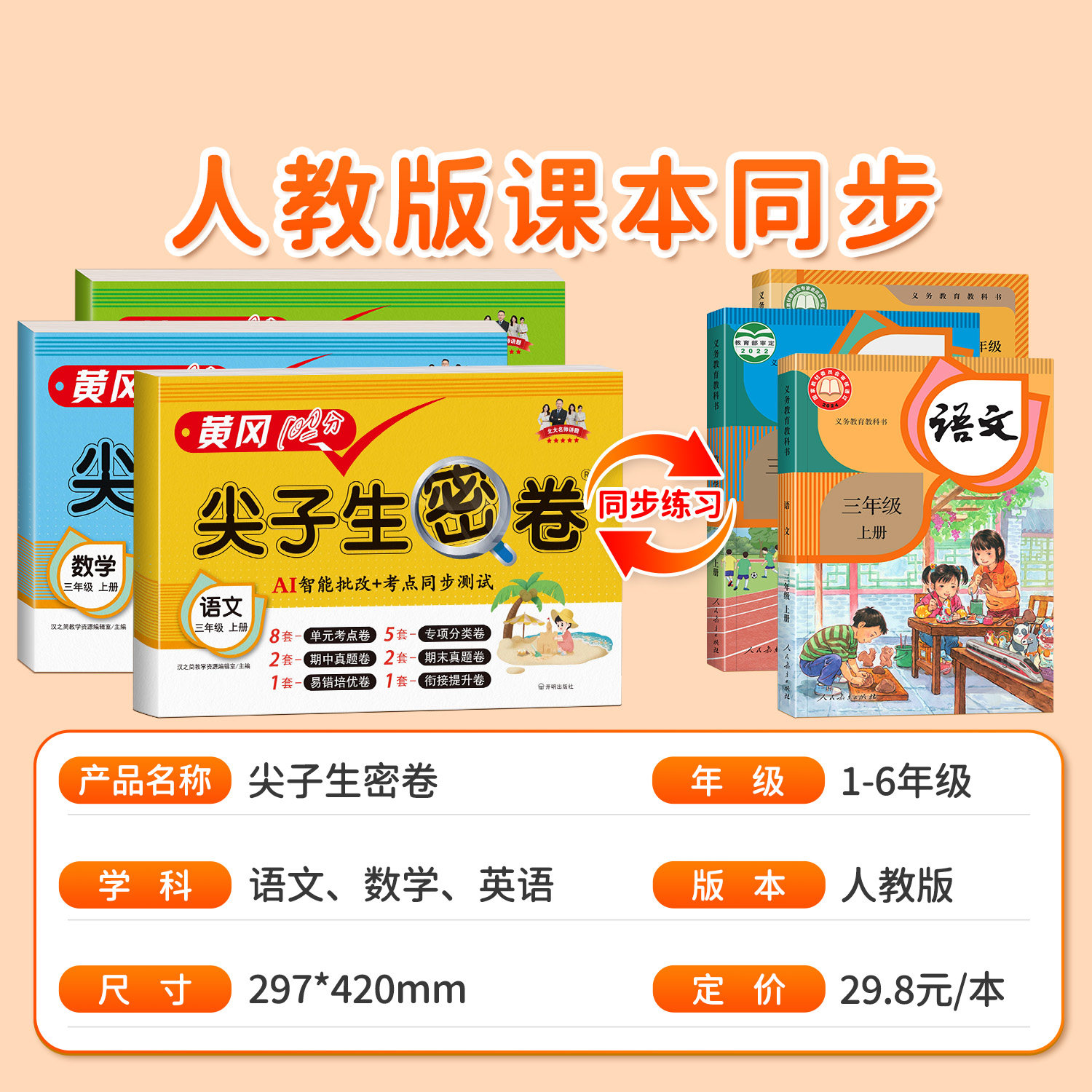 《黄冈100分尖子生密卷》是一套专为小学一至六年级学生设计的同步练习与测评丛书,涵盖语文、数学、英语三科,分上下册,与人教版教材完全同步。试卷紧扣新课标要求,题型丰富多样,包含单元测试、期中、期末综合卷及专项训练,注重基础知识巩固与能力提升并重。题目由黄冈一线名师精心编写,难度适中、梯度合理,既夯实课本知识,又拓展思维训练,助力学生冲刺满分。每套试卷配备详细答案解析,便于学生自查自纠,是学生日常练习、考前复习的理想选择,广受师生和家长好评。