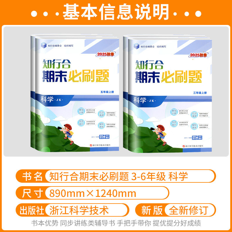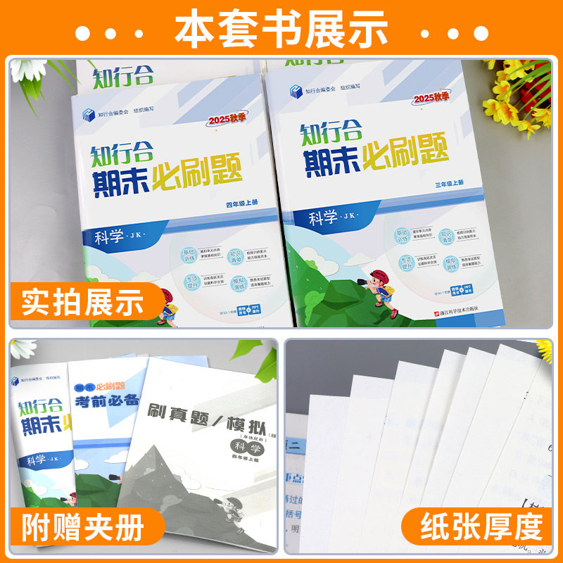 天猫浙江适用科学试卷教科版 知行合期末必刷题三四年级五六年级上册下册科学教科版全套浙江专用 小学期末真题模拟测试卷考试卷子同步