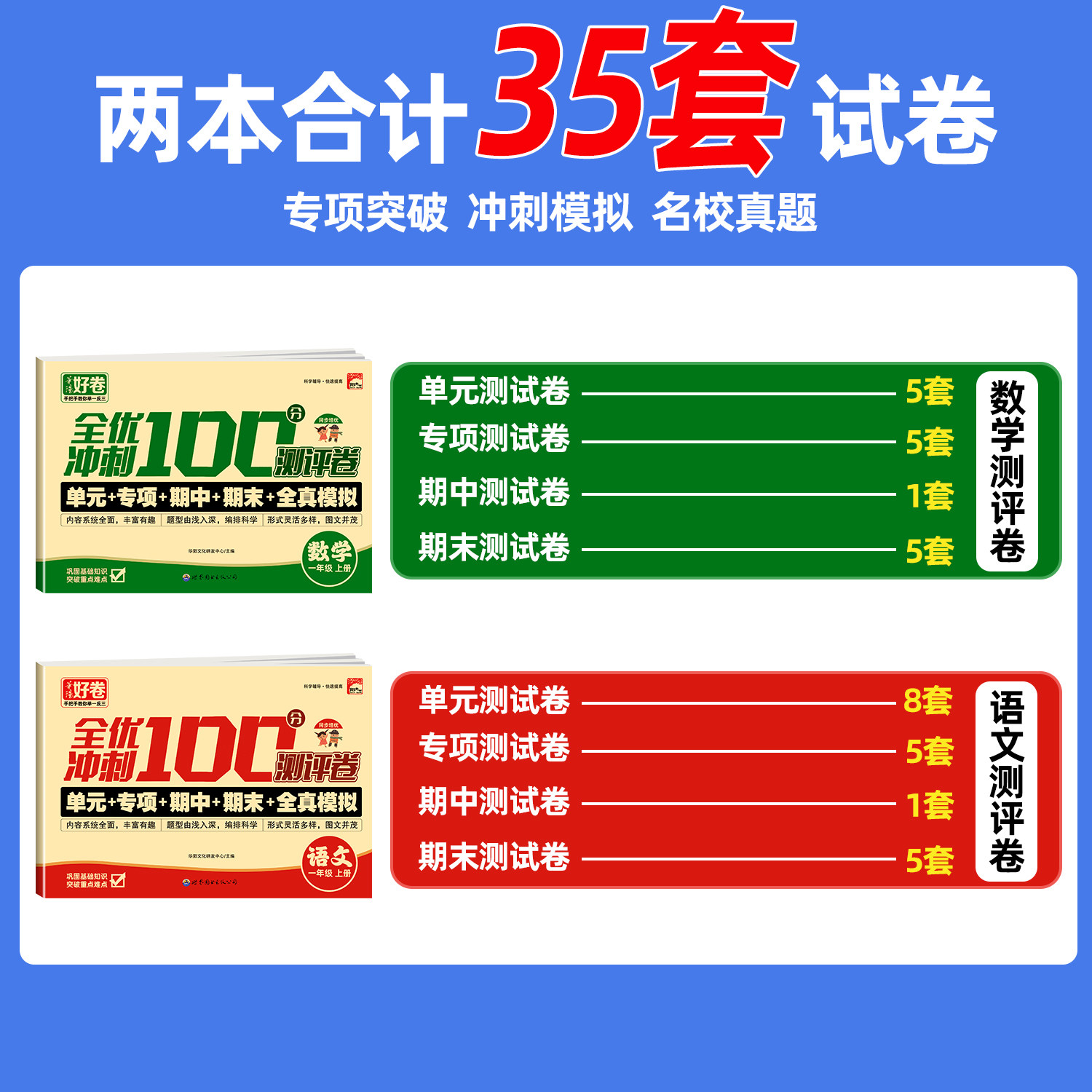 天猫2025新版 一年级上下册试卷测试卷全套 全优冲刺100分测评卷人教部编版语文数学同步练习册小学卷子资料单元期中期末考试卷练习题