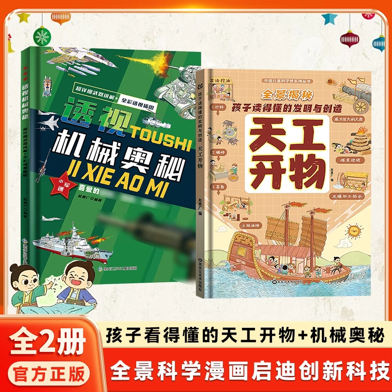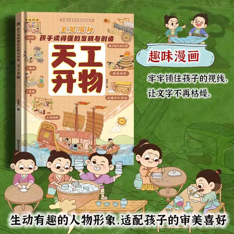 【抖音同款】全3册全景漫画精装硬壳漫画版《天工开物》是针对儿童和青少年推出的一套科普百科书籍。这本书以全景漫画的形式展现了古代的发明与创新,将科技知识与生动的漫画相结合,让孩子在轻松愉快的阅读中了解古代的创造历史。该书内容丰富,涵盖了天工开物的多个领域,如农业、制造业、纺织业等,以图文结合的方式生动诠释了发明与创造的过程。这套书籍适合三四五六年级的小学生阅读,能够激发孩子们对科技的兴趣和好奇心,培养他们的创新思维和创造力。