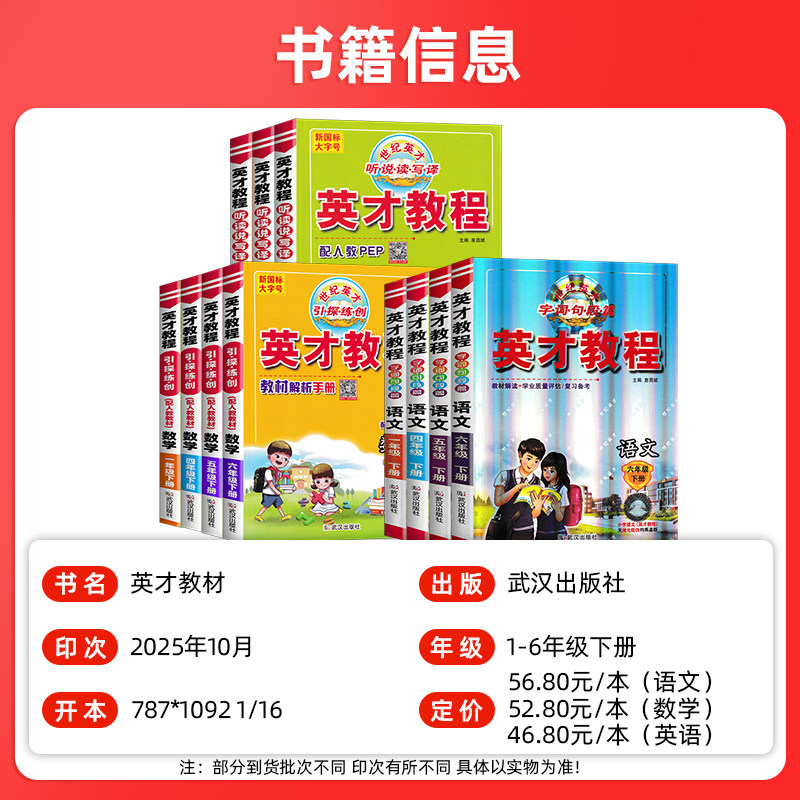 天猫2026春季新版英才教程六年级下册四五年级一二三年级语文数学英语全套部编人教版北师小学课本同步练习册辅导书教材解读全解资料