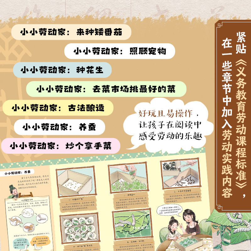 《齐民要术给孩子的中国古代农业百科全书》由李德新编著,专为5-12岁儿童打造,是一本生动有趣的少儿科普读物。本书以中国古代农学经典《齐民要术》为蓝本,用通俗易懂的语言和精美插图,向孩子们介绍古代农业智慧,涵盖作物种植、家畜饲养、食品加工、节气农事等内容。书中设置“小小农学家”互动环节,激发孩子动手实践与探索兴趣。作为中华优秀传统文化的启蒙读物,它不仅拓展孩子的知识视野,更培养其对自然与劳动的尊重。适合小学生课外阅读,是家庭与学校开展农耕文化教育的优质读本,让孩子在阅读中感受千年农耕文明的魅力。