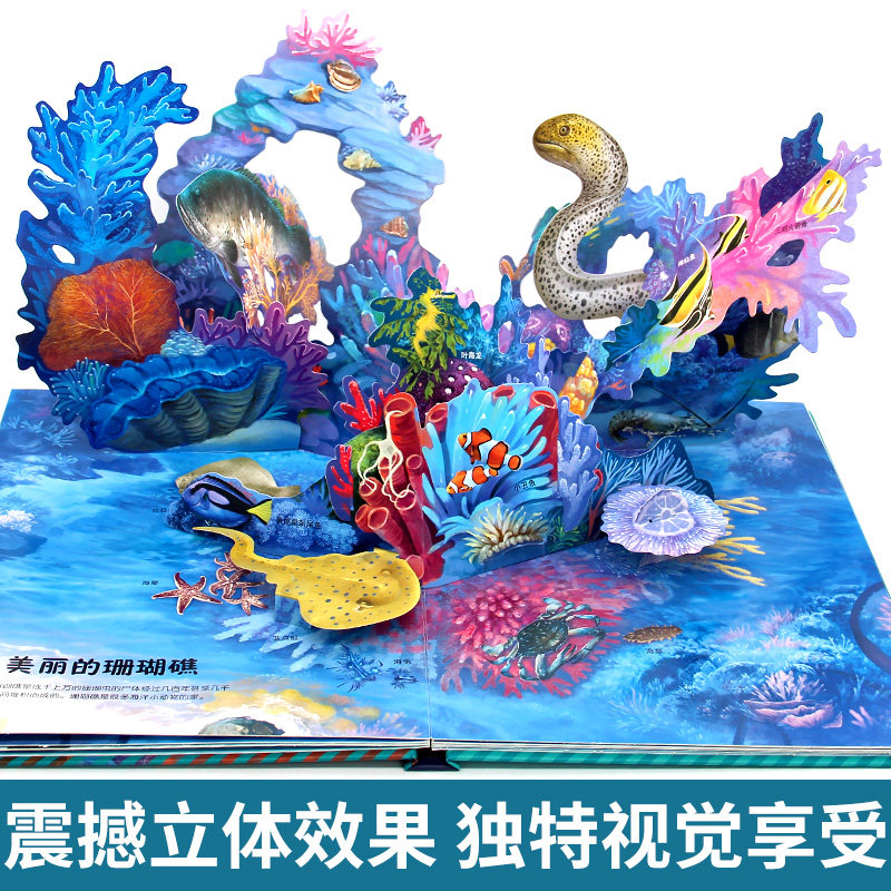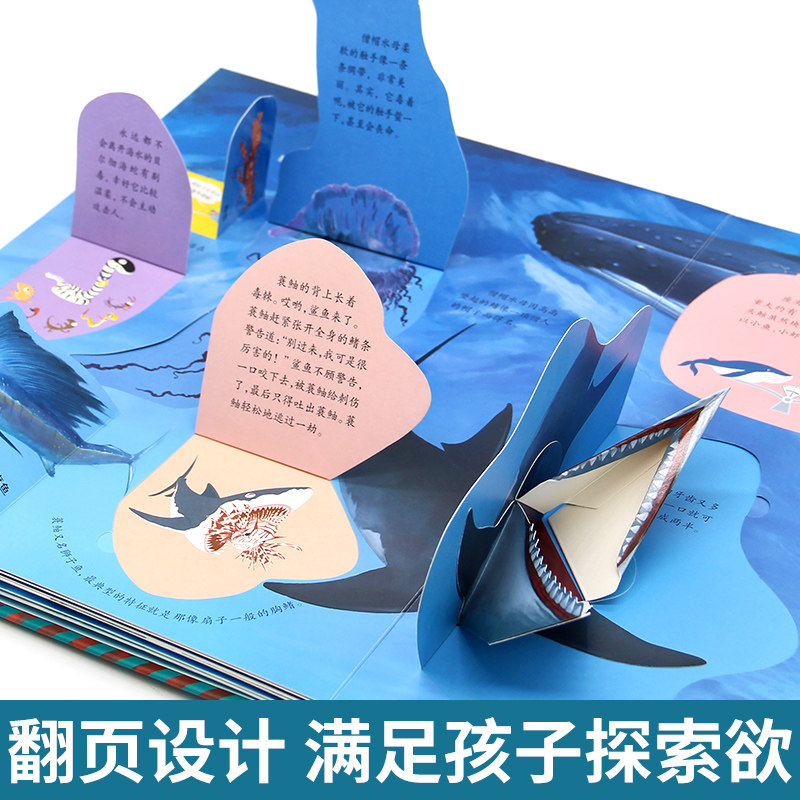 天猫探秘海洋3d立体书翻翻书3-6岁幼儿早教启蒙趣味科普百科大全小学一二年级少儿机关书动物课外故事书儿童海洋百科全书揭秘系列绘本