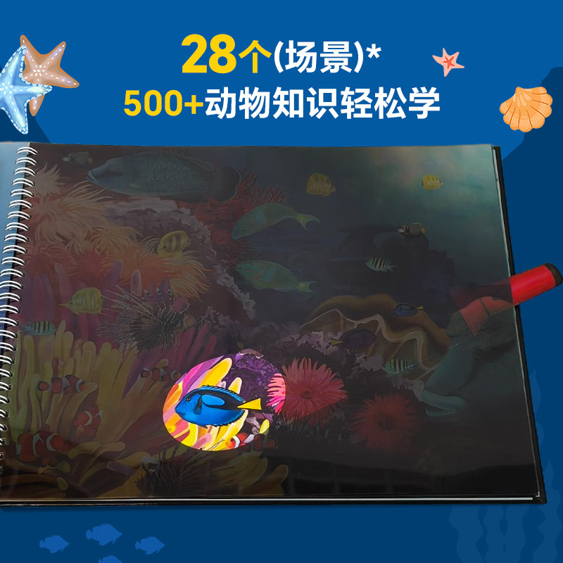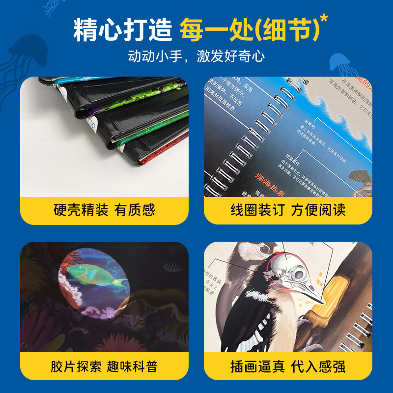 天猫海润阳光儿童动物科普手电筒胶片书4册探访陆地居民+发现身边邻居+潜入水下世界+搜寻洞中秘密3-6岁幼儿启蒙认知益智孩子手电筒书