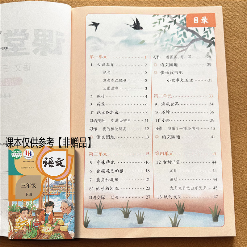 天猫三年级下册课堂笔记2026春季新版人教版部编版同步语文数学课本教材小学英语中文翻译正版课堂笔记课本原文全讲解预习资料辅导书本