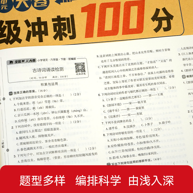 《一二三四五六年级上下册试卷测试卷》是一套专为小学生设计的高质量同步练习册,涵盖语文、数学、英语三科,包含课堂达标、单元测试、期中期末冲刺及专项思维训练等多种题型。试卷紧扣教材大纲,题型丰富、难度适中,注重基础知识巩固与思维能力拓展,帮助学生系统掌握知识点,提升综合应试能力。每册按学期分册,与教学进度同步,适合课堂练习、家庭作业及考前复习使用。通过“冲刺100分”系列训练,有效激发学生学习兴趣,培养良好学习习惯,是小学生夯实基础、提高成绩的理想教辅材料。
