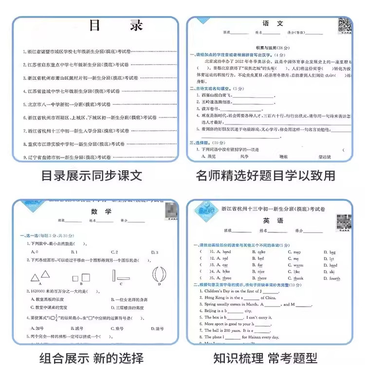 《2026新版孟建平小升初名校初一新生分班摸底考试卷》是一套专为六年级学生准备的小升初备考资料。其中包括六年级下册的语文、数学、英语以及科学(教科版)的模拟测试卷、真题卷和必刷题。这套资料旨在帮助学生适应初中阶段的学习生活,提前熟悉初中的考试形式和难度。通过分班摸底考试的形式,帮助学生全面复习所学知识,掌握重点难点,提高解题技巧,为即将到来的初中生活做好充分准备。