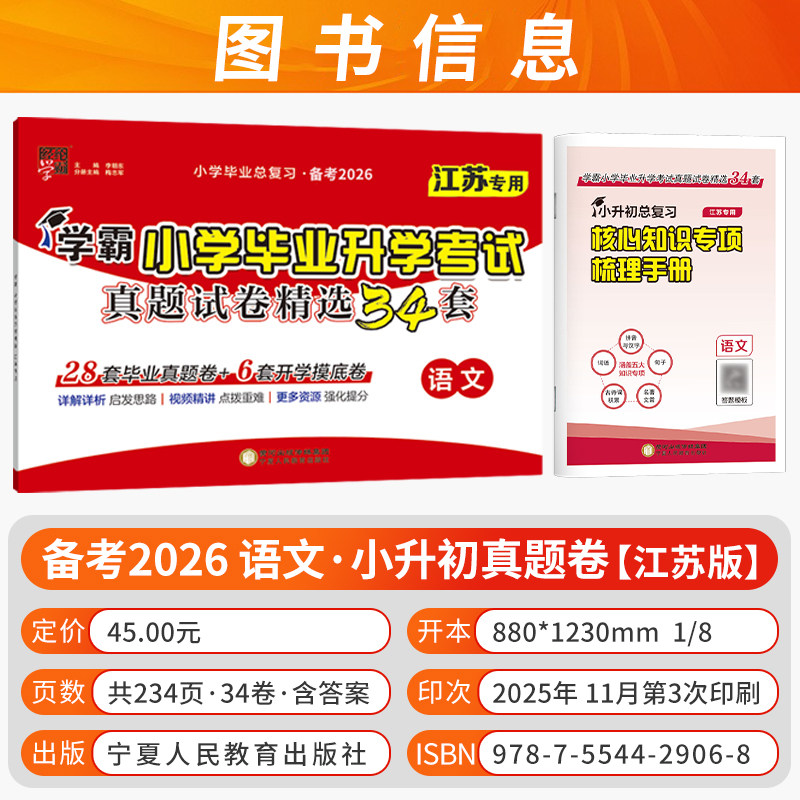 天猫备考2026小学学霸小升初提优大试卷小学毕业升学考试真题试卷精编精选34套三四五六年级适用语文数学英语江苏教版译林版2024年真题