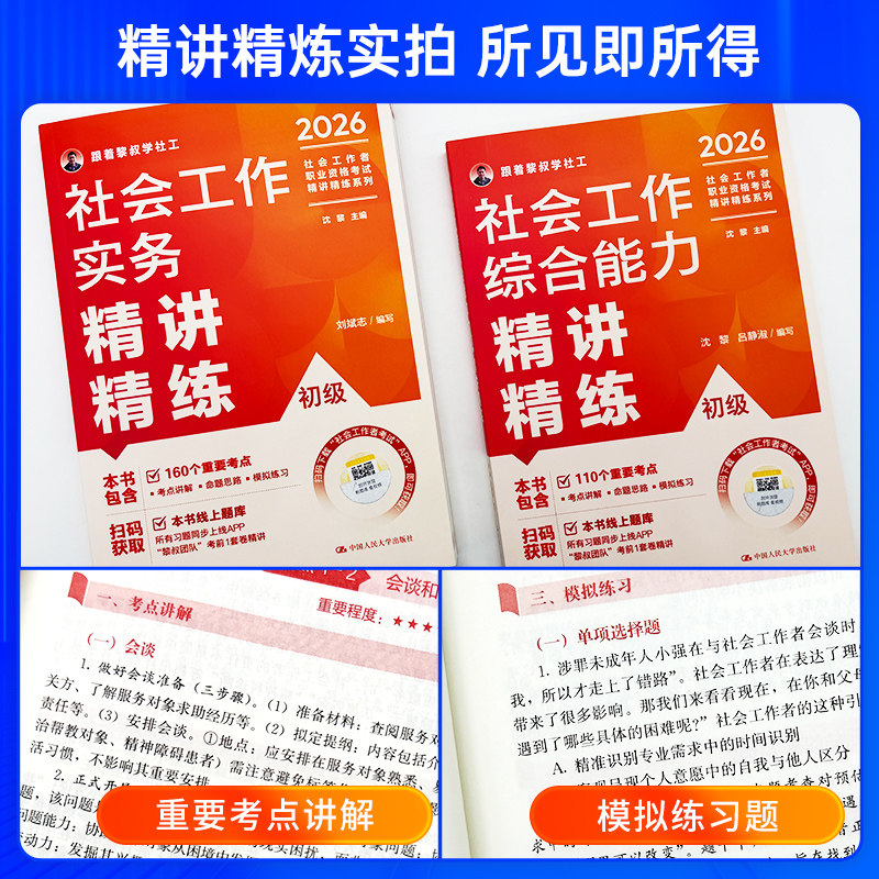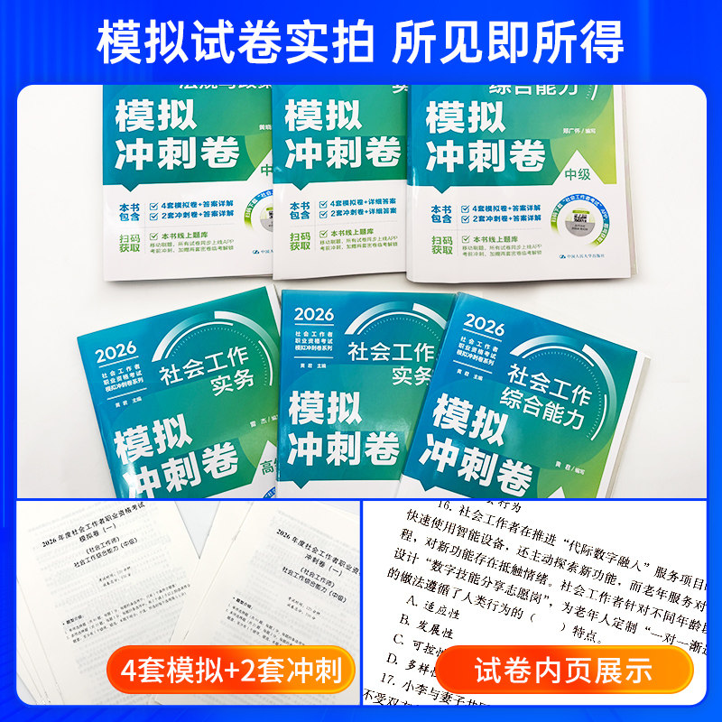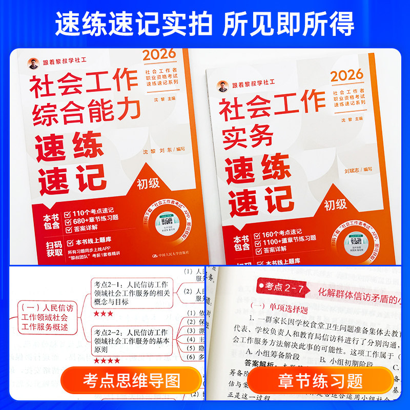 2026年人民大学出版社官方出版的《社工证中级考试教材配套模拟冲刺试卷》《社工初级速练速记一本通》及《社会工作者中级精讲精练题库》,是专为备考社会工作者职业水平考试的考生精心打造的权威辅导资料。该系列紧扣最新考试大纲,内容覆盖全面,题型设计贴近真题,强化重点难点解析,助力考生高效备考。模拟试卷注重实战演练,帮助熟悉考试节奏;速记手册提炼核心知识点,便于快速记忆;题库则提供海量练习题与详细解析,实现背练结合。无论是初级还是中级考生,都能通过这套系统化、专业化的一通式学习资料,夯实基础、提升应试能力,顺利通过社工证考试。