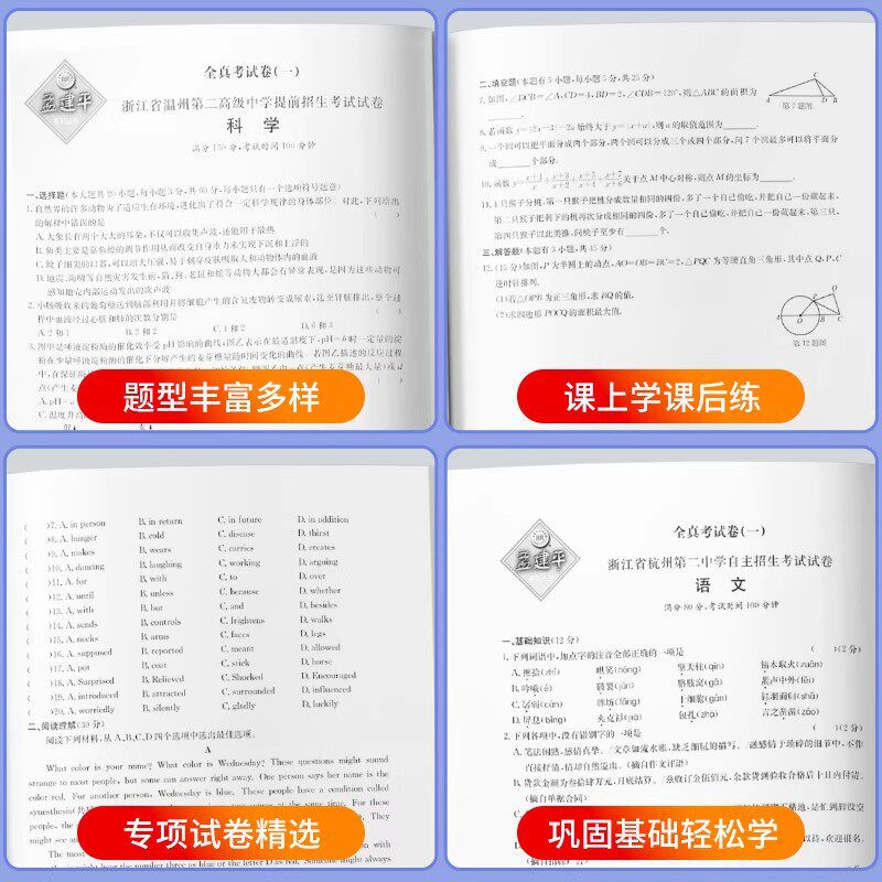 天猫2026新版孟建平初升高名牌一级重点高中招生考试卷语文数学英语科学九年级中考初升高衔接教材真题卷高材生选拔招生初三总复习资料