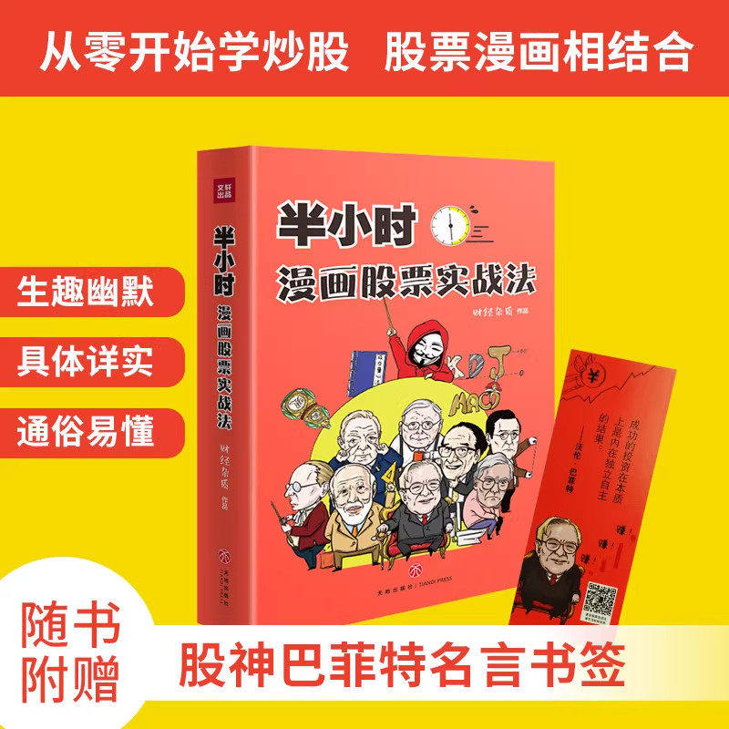 《半小时漫画股票实战法》是“财经杂质”团队打造的零基础炒股入门佳作,将枯燥的股票知识与风趣幽默的漫画巧妙结合,让小白也能轻松看懂A股门道。书中以通俗易懂的语言讲解K线、均线、成交量等核心概念,涵盖选股、买卖时机、风险控制及基金定投等实战技巧,真正实现了“从零开始学炒股”。无论是股票新手,还是想系统提升理财能力的投资者,都能在轻松阅读中掌握投资精髓。这本书不仅是股票入门的扫盲利器,更是通往理性投资之路的实用指南,助你避开误区,稳健开启财富增值之旅。