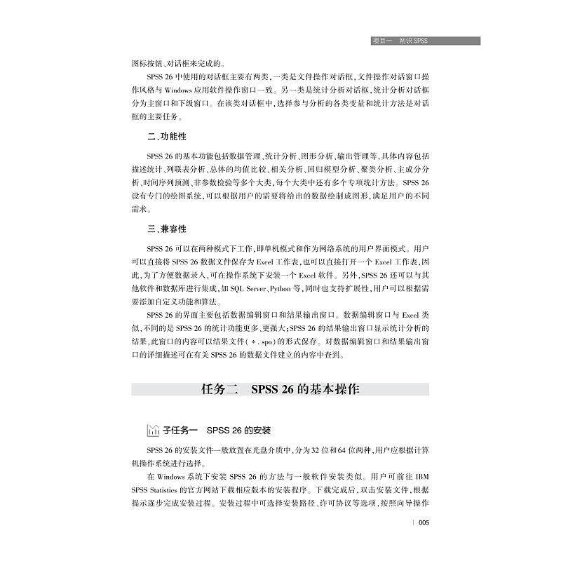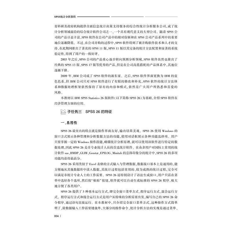 《SPSS统计分析教程》是“人工智能与大数据+”财经类融媒体系列教材之一,由闫杰、姜忠鹤、应畅主编,浙江大学出版社出版。本书紧扣财经类专业人才培养需求,结合人工智能与大数据时代背景,系统介绍SPSS软件在数据分析中的核心应用。内容涵盖数据录入、清洗、描述性统计、假设检验、回归分析、因子分析等常用统计方法,注重理论与实践结合,案例多源于经济管理实际场景。教材配套丰富的融媒体资源,包括视频讲解、习题库与数据文件,便于线上线下混合式教学。适合高校财经类专业本科生、研究生及从事数据分析相关工作的人员使用,是掌握统计工具、提升数据素养的实用指南。