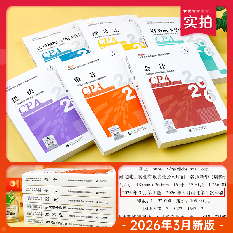 2026年注册会计师(CPA)官方教材全套由财经社权威出版,涵盖《会计》《税法》《审计》《经济法》《财务成本管理》《公司战略与风险管理》六大科目,内容紧扣最新考试大纲,全面更新政策法规与实务案例。配套“轻松过关1”系列辅导书,精选高频考点,强化重难点解析,助力高效备考。同时提供历年真题、模拟试卷及高质量题库,题型贴近实战,帮助考生熟悉考试节奏、查漏补缺。教材体系完整、讲解清晰,是广大CPA考生系统复习、冲刺通关的首选资料。无论是零基础学员还是强化提升阶段,都能从中获得扎实支撑,稳步迈向注会成功之路。
