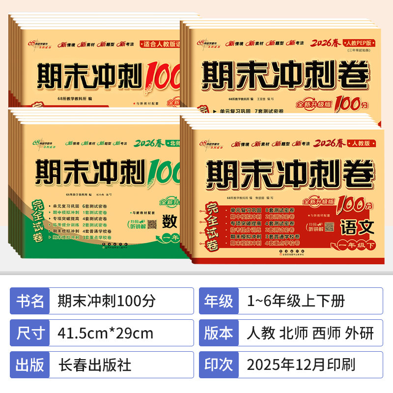 天猫期末冲刺100分一二三四五六年级上册下册试卷测试卷全套语文数学人教版北师西师外研版英语同步训练试卷期末考试总复习一百分试卷