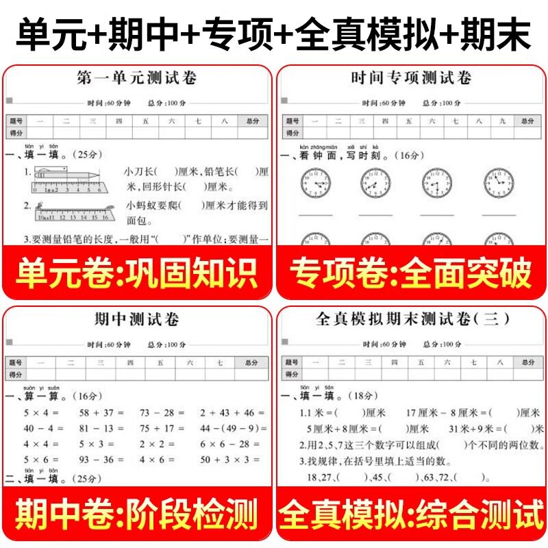 期末冲刺100分一年级二年级三年级四五六年级下册语文数学英语测试卷全套人教版小学同步训练题专项练习册单元期末考试试卷题上册