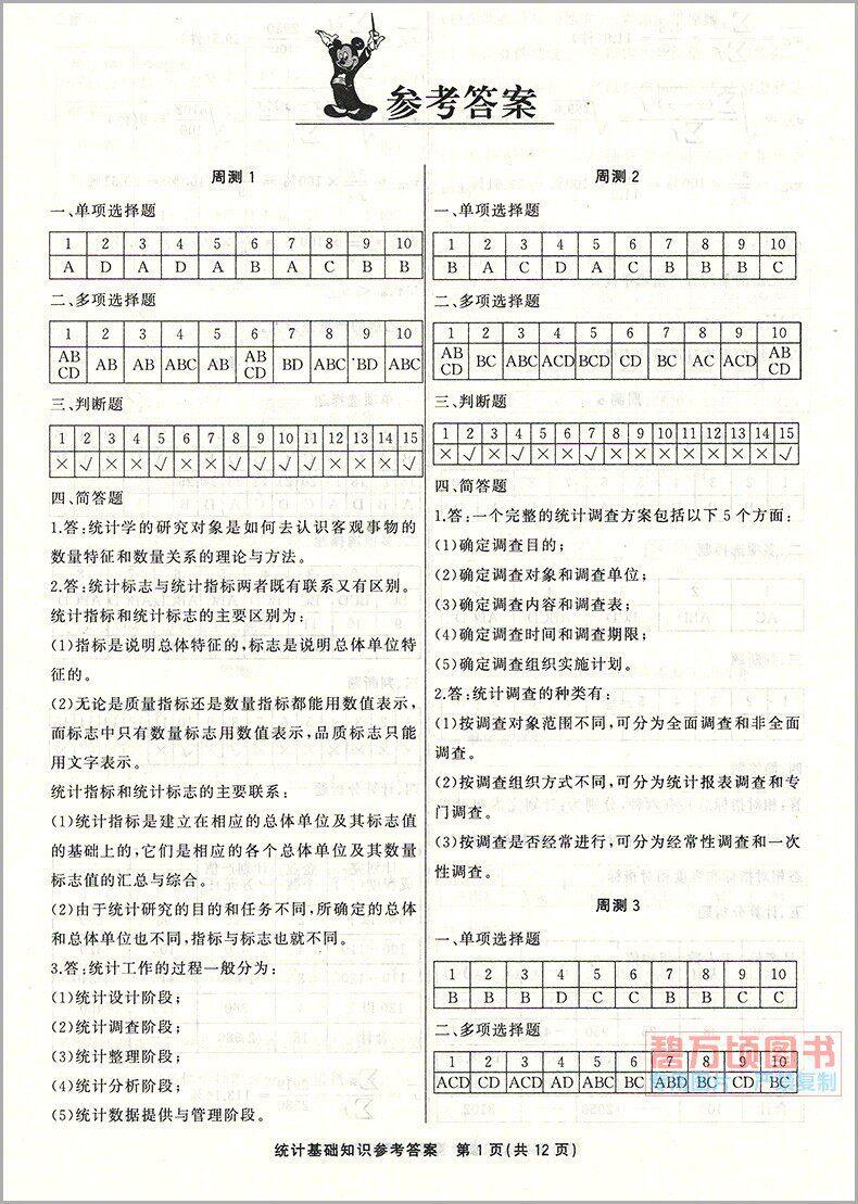天猫中等职业学校中职统计基础知识周测月考单元训练试卷中职生对口升学考试财经类单元综合测试职高对口高考训练试题世界知识出版社