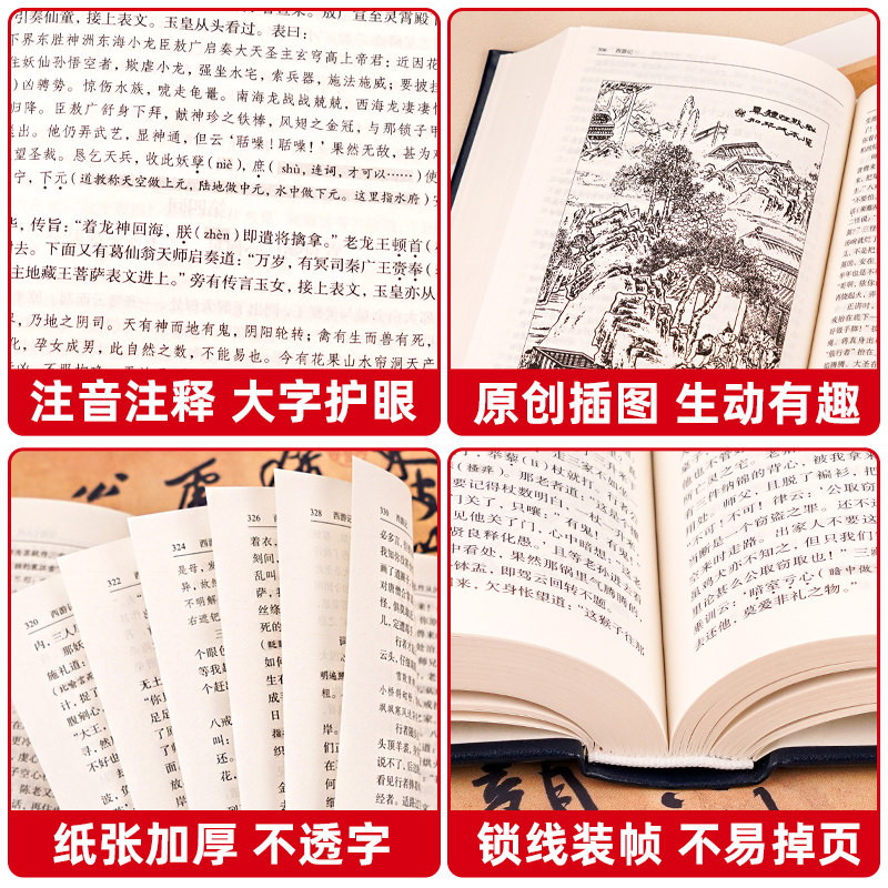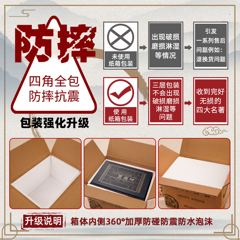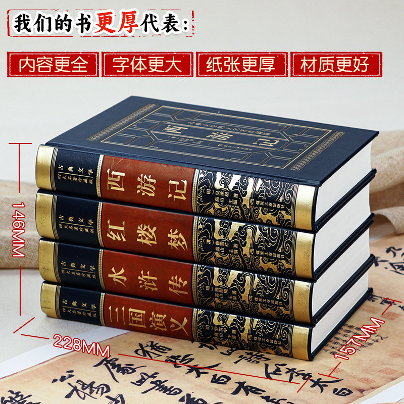 《中国四大名著全套原著正版完整版》(精装无删减青少年珍藏版)由人民教育出版社出版,精选《三国演义》《西游记》《水浒传》《红楼梦》四部经典原著,采用白话文与文言文对照编排,既保留古典韵味,又便于青少年阅读理解。全书内容完整无删减,忠实呈现原著风貌,配以精美插图与注释,帮助初中生深入理解人物性格与时代背景。装帧考究,纸张优良,兼具收藏与学习价值,是青少年亲近中华优秀传统文化、提升语文素养的理想读本,适合家庭收藏与课堂拓展阅读,助力学生全面掌握中国古典文学精髓。