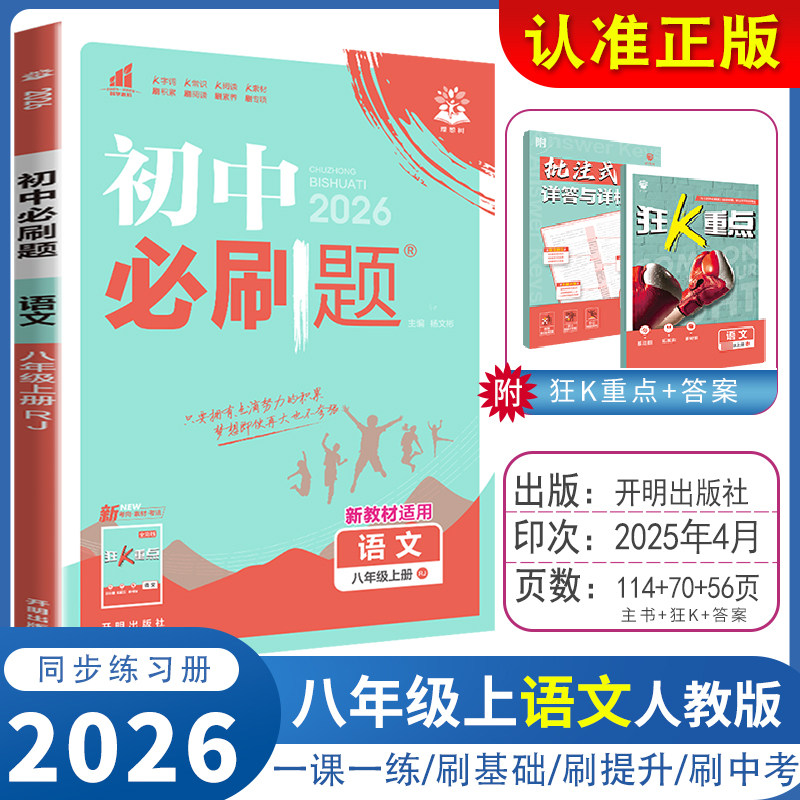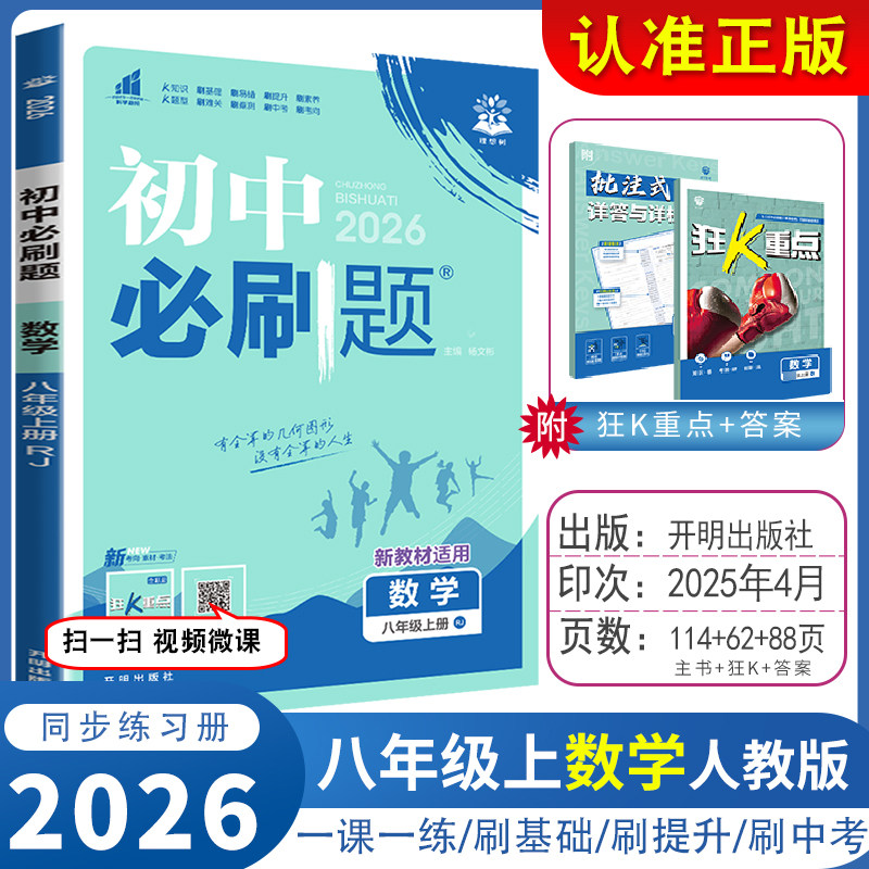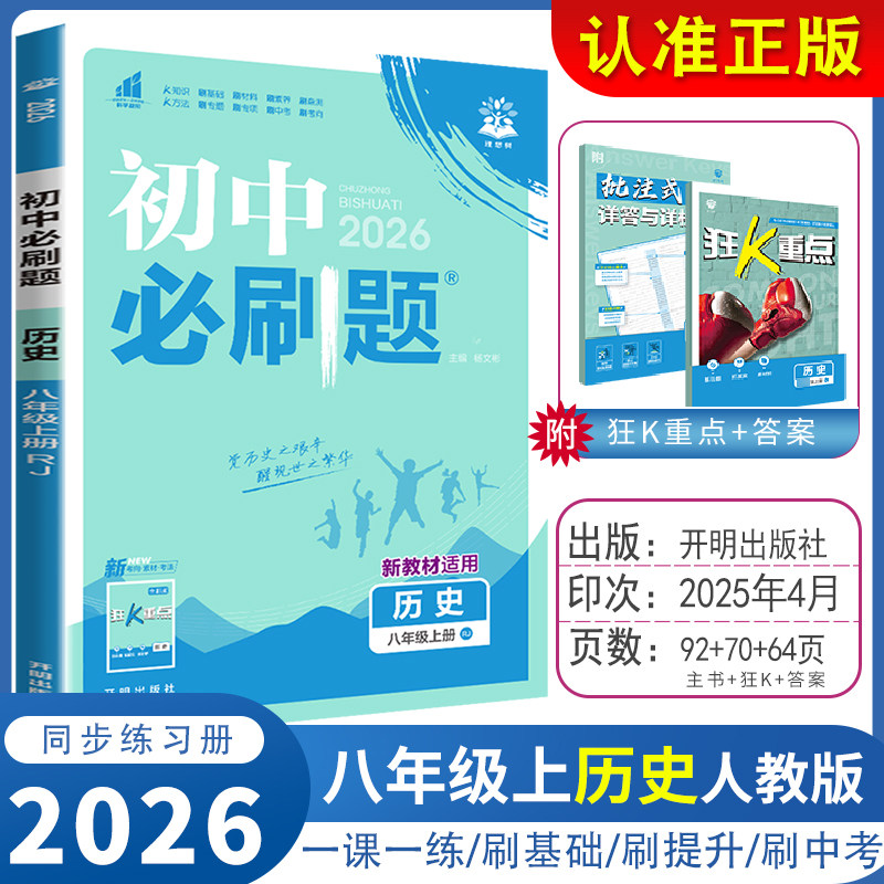 2026新版《初中必刷题》八年级上下册(数学沪科版HK,语文、英语、物理、历史、政治、地理人教版RJ)紧扣新课标与教材同步,专为初二学生设计。丛书涵盖八年级全学年核心知识点,题型丰富,梯度清晰,基础巩固与能力提升并重。每科配备同步练习、单元检测及综合试卷,帮助学生夯实基础、突破重难点。题目精选典型例题与中考真题,解析详尽,便于自学与复习。搭配知识清单与易错警示,强化理解与记忆。适合课堂同步训练、课后巩固及考前冲刺,是提升学业成绩的高效学习工具,助力学生轻松应对学习与考试挑战。