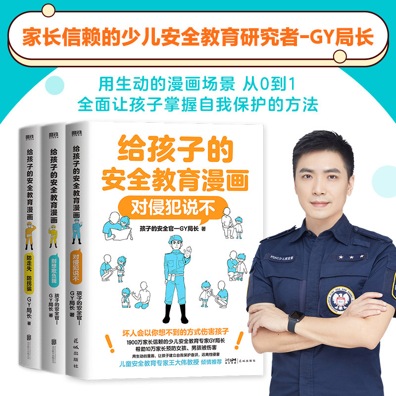 【正版速发】《给孩子的安全教育漫画系列》由少儿安全教育专家GY局长倾力打造,专为3-12岁儿童设计。通过生动有趣的漫画形式,系统讲解防走失、防拐骗、拒绝侵犯、应对欺凌等关键安全知识,让孩子在轻松阅读中掌握自我保护技能。书中案例贴近生活,语言通俗易懂,帮助孩子识别危险、勇敢说“不”,建立安全意识与应对能力。每册聚焦一个主题,如《别想欺负我》《对侵犯说不》等,全面覆盖校园、家庭与公共场所的安全隐患。GY局长结合多年实战经验,内容权威实用,是家长信赖、孩子喜爱的安全启蒙读物,助力孩子平安健康成长。