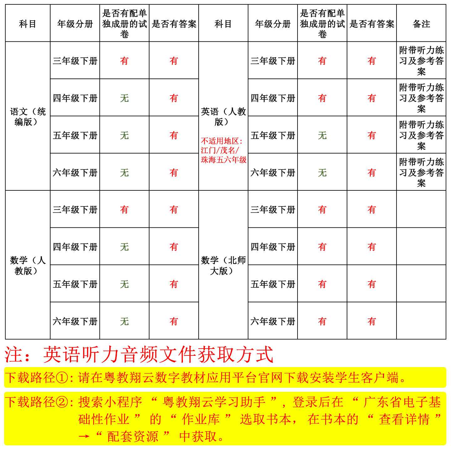 2026春正版《广东省电子基础性作业》专为小学三至六年级下册学生设计,严格配套统编版语文、北师大版数学、人教版PEP及粤教翔云版英语教材,内容紧扣新课标要求,题型丰富多样,注重基础知识巩固与能力拓展。作业设计科学分层,兼顾趣味性与实践性,助力学生高效掌握课堂所学。电子版形式便于教师布置、家长辅导与学生自主学习,支持多终端使用,响应“双减”政策,减轻课业负担的同时提升学习质量。适用于广东省内小学日常练习、课后巩固与阶段性检测,是师生家长信赖的优质教学辅助资源。