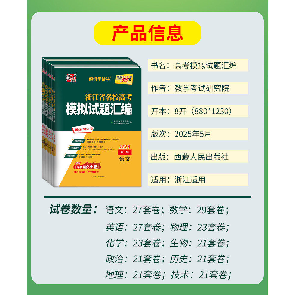 浙江专版2026版天利38套浙江省高考模拟试题汇编第二辑一辑1月6月语文数学英语物理化学生物政治历史地理技术高考总复习真题模拟卷