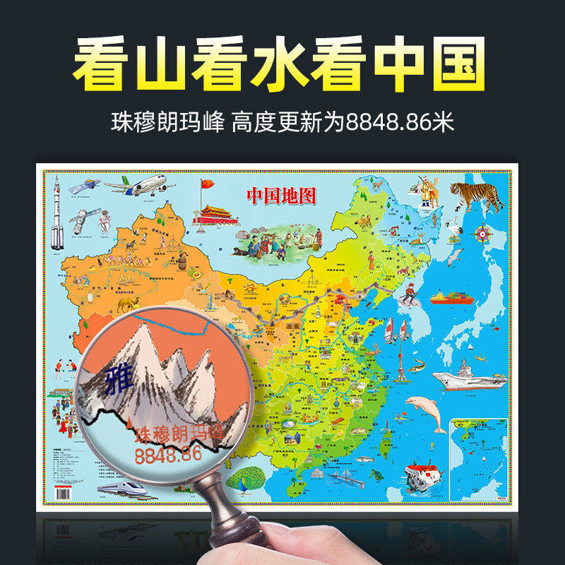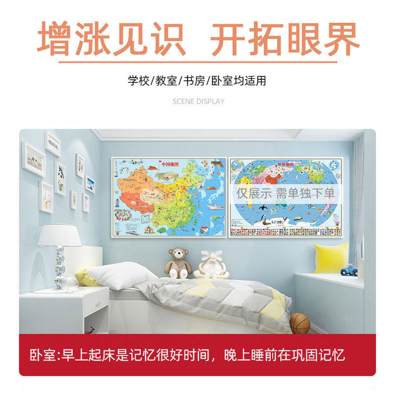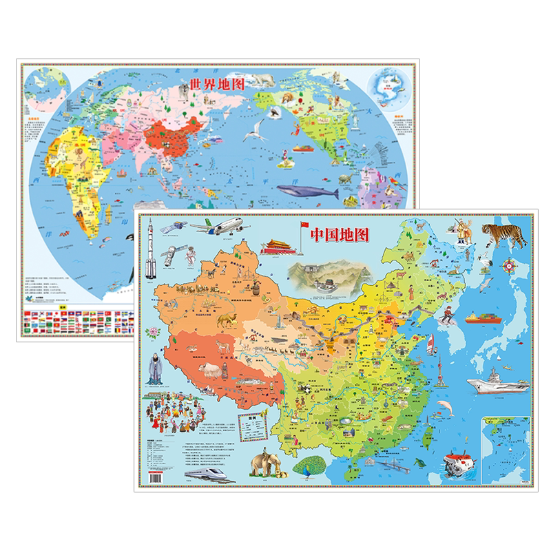 天猫【共2张】2025年中国和世界地图儿童版 早教启蒙儿童地理地图高清挂画 儿童房家用墙贴墙面装饰手绘挂图 小学生少儿地理知识地图