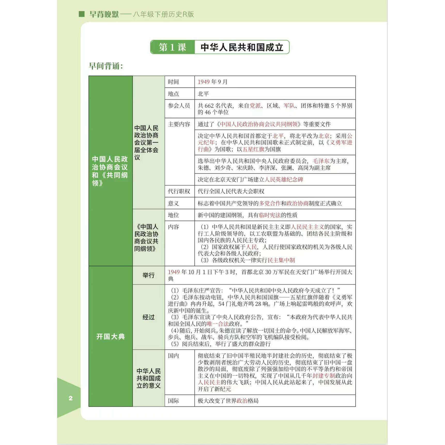 《26新版历史教材八下人教版课堂笔记》紧扣2026年最新人教版八年级下册历史教材,系统梳理课标重点、难点与考点。本书以“早背晚默”为核心学习法,帮助学生高效记忆关键史实、时间线索与历史概念。内容涵盖从新中国成立到改革开放的重要历史事件,结构清晰,配有思维导图和典型例题,强化理解与运用。每课设“知识梳理”“要点精析”“默写检测”三大板块,助力学生夯实基础、提升应试能力。适合八年级学生同步学习与期末复习,是提升历史学科素养的实用工具书。