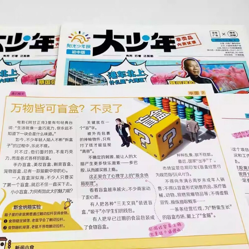 【报纸过刊清仓】超值特惠!现推出2025年度《阳光少年报》《21世纪英文报》《意林AI少年学习报》《英语周报》及《二十一世纪小学版/初中版》等优质过刊清仓活动。这些报刊内容涵盖时事热点、英语学习、科学探索与人文素养,专为中小学生设计,助力课外知识拓展与综合能力培养。过刊保存完好,内容依然新颖实用,是家庭阅读、假期充电的绝佳选择。数量有限,价格优惠,适合收藏或作为学习辅助资料。抓住机会,用实惠价格为孩子储备丰富精神食粮,让阅读点亮成长之路!