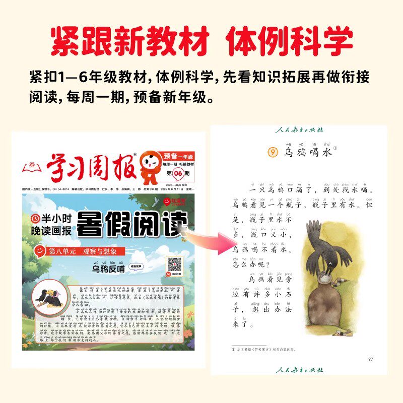 《2026新学习周报》小学版专为1-5年级学生设计,是暑假衔接与全年提升的优质学习资源。每周半小时,轻松完成“一周一练”,同步教材夯实基础知识,涵盖字词句、计算、阅读理解等核心内容。特别设置“预备新年级”专题,帮助孩子平稳过渡到新学年。结合课外拓展阅读,精选适龄美文、科普短文,提升语文素养与思维能力。全年期刊报纸形式发行,内容鲜活、趣味性强,适合晚读时光亲子共读或自主练习。科学编排,讲练结合,既巩固课内所学,又拓宽知识视野,是小学生暑假衔接与日常学习的得力助手。