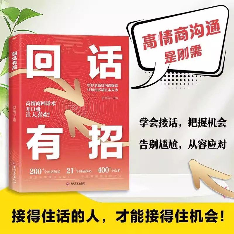 《抖音同款】回话有招:高情商聊天术》是一套专为提升沟通力打造的实用口才训练书籍,共2册,涵盖“沟通有道”与“高情商回话的技术”两大核心内容。书中结合真实场景,系统讲解如何巧妙接话、化解尴尬、赢得好感,适用于职场、销售、社交及日常生活。作者以简洁易懂的语言,融合心理学与沟通艺术,提供即学即用的回话技巧与表达策略,助你快速提升情商与影响力。无论是提升人际交往能力,还是增强销售说服力,这套正版书籍都是不可多得的沟通秘籍,让你轻松掌握“好好接话”的艺术,成为会说话、受欢迎的高情商达人。