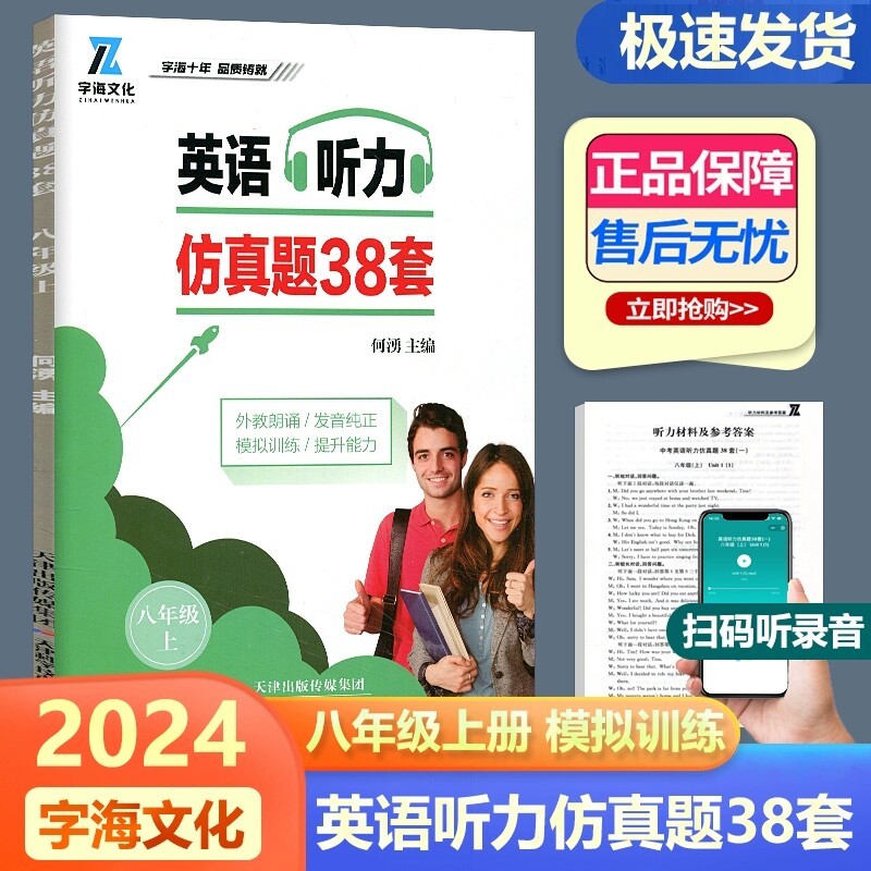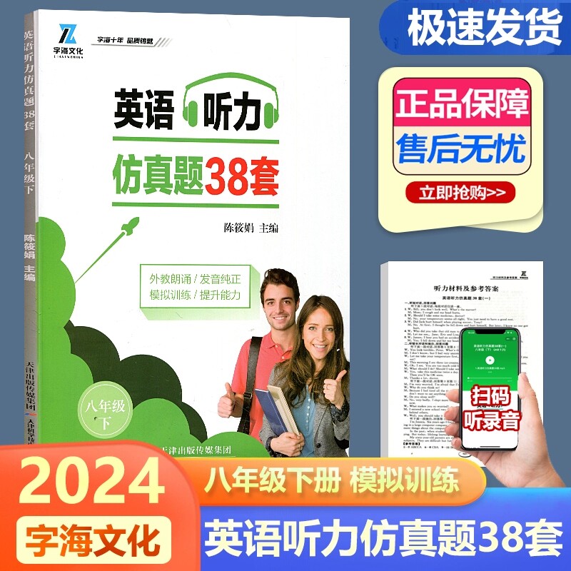 《新版英语听力仿真题38套》专为初中七、八年级学生设计,涵盖上下册内容,共38套高质量听力模拟试题,紧扣新课标要求与中考题型。每套试题均由外教纯正发音朗诵,语音清晰、语调自然,有效提升学生听力理解与辨音能力。题目难度梯度合理,题型多样,包括短对话、长对话、短文理解等,全面训练学生抓取关键信息、推理判断等核心听力技能。由天津科学技术出版社出版,内容权威、编排科学,是中学生日常练习与考前冲刺的理想听力辅导资料,助力学生稳步提升英语听力水平。